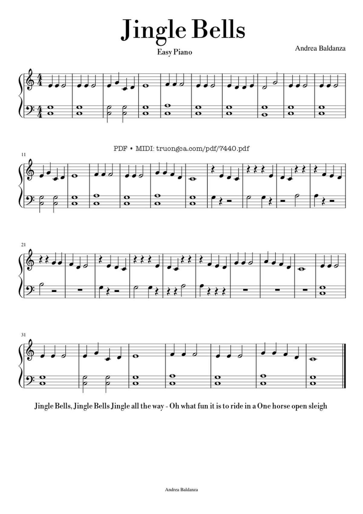 The Videos/audios Jingle Bells Piano EASY by James Pierpont were embed from Youtube, Musescore or the other 3rd links. Videos are subject to 3rd's copyright control and may be removed by YouTube's copyright rules and 3rd's policies or maybe included advertisements. If you cannot access to these videos/audios, this mean that have been removed.