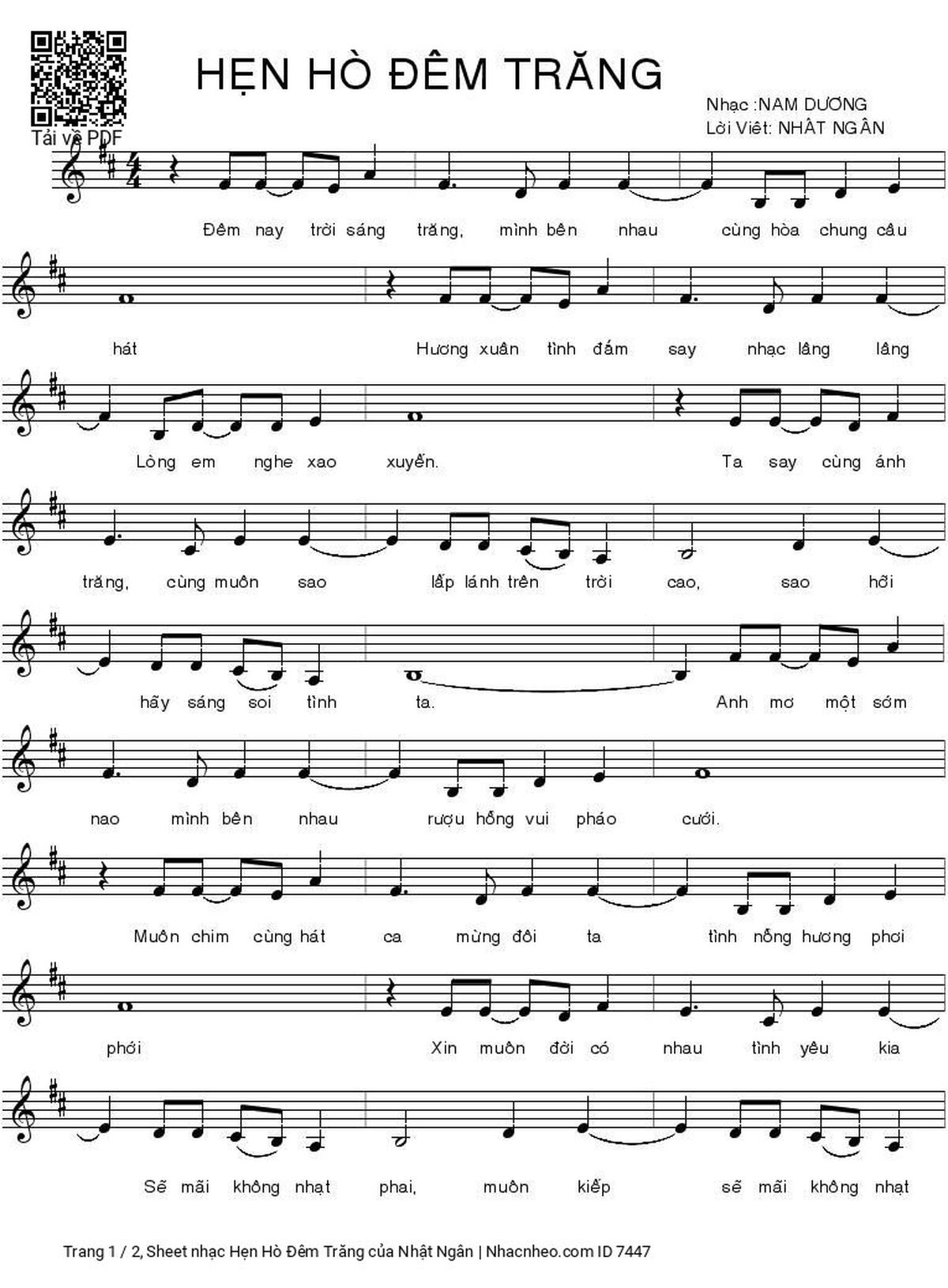 Page 2 of Sheet music PDF Hẹn Hò Đêm Trăng - Nhật Ngân