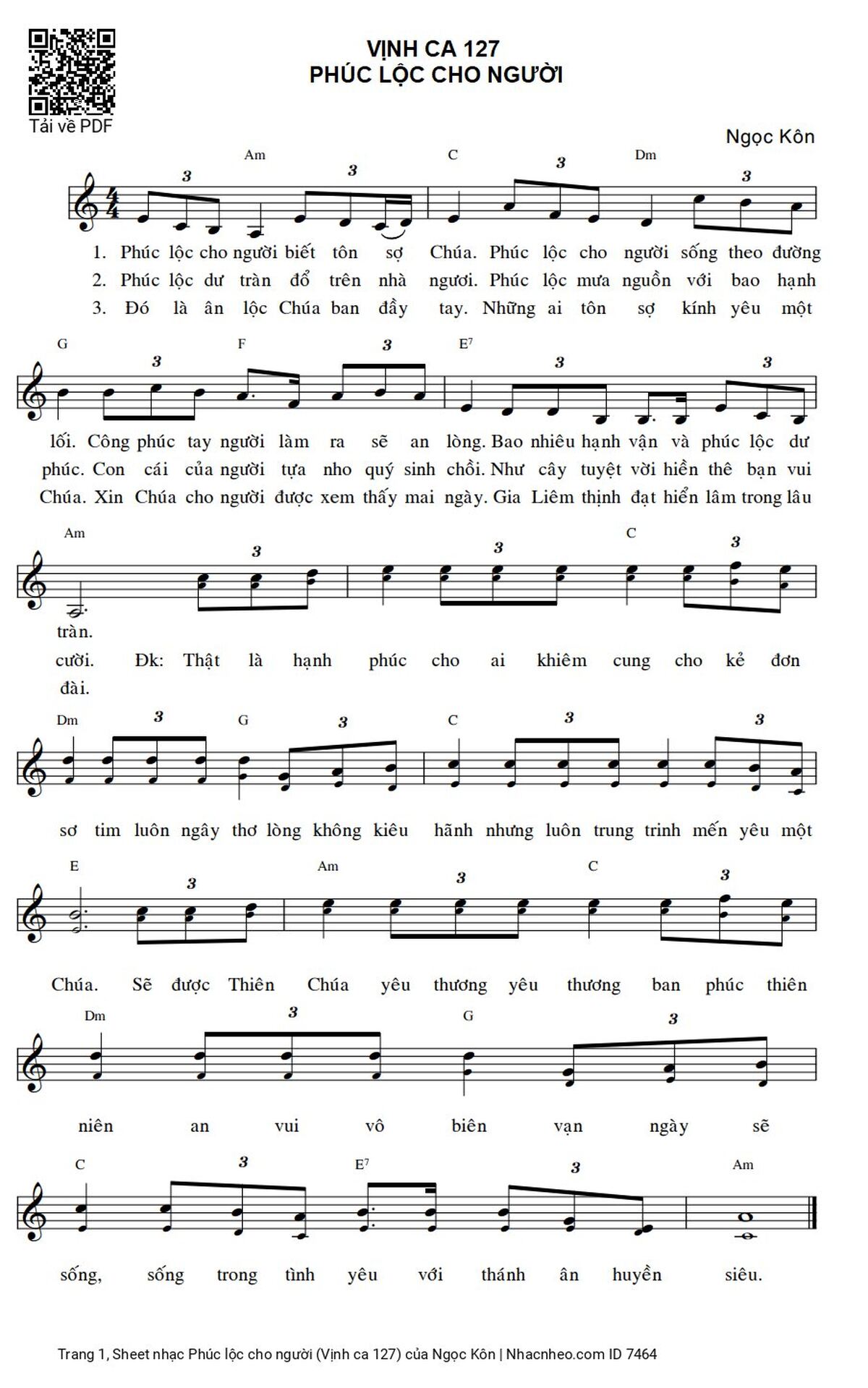 Ngọc Kôn Phúc lộc cho người biết tôn sợ Chúa Phúc lộc cho người sống theo đường lối [PDF] [Sheet] [Lyrics] [Mp4/Midi]
