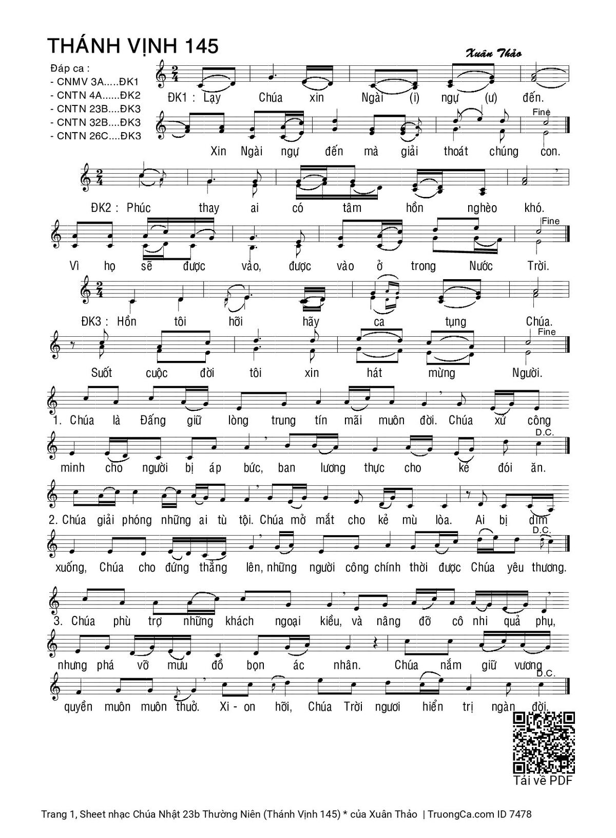 Sheet PDF with the same name Chúa Nhật 23b Thường Niên (Thánh Vịnh 145):