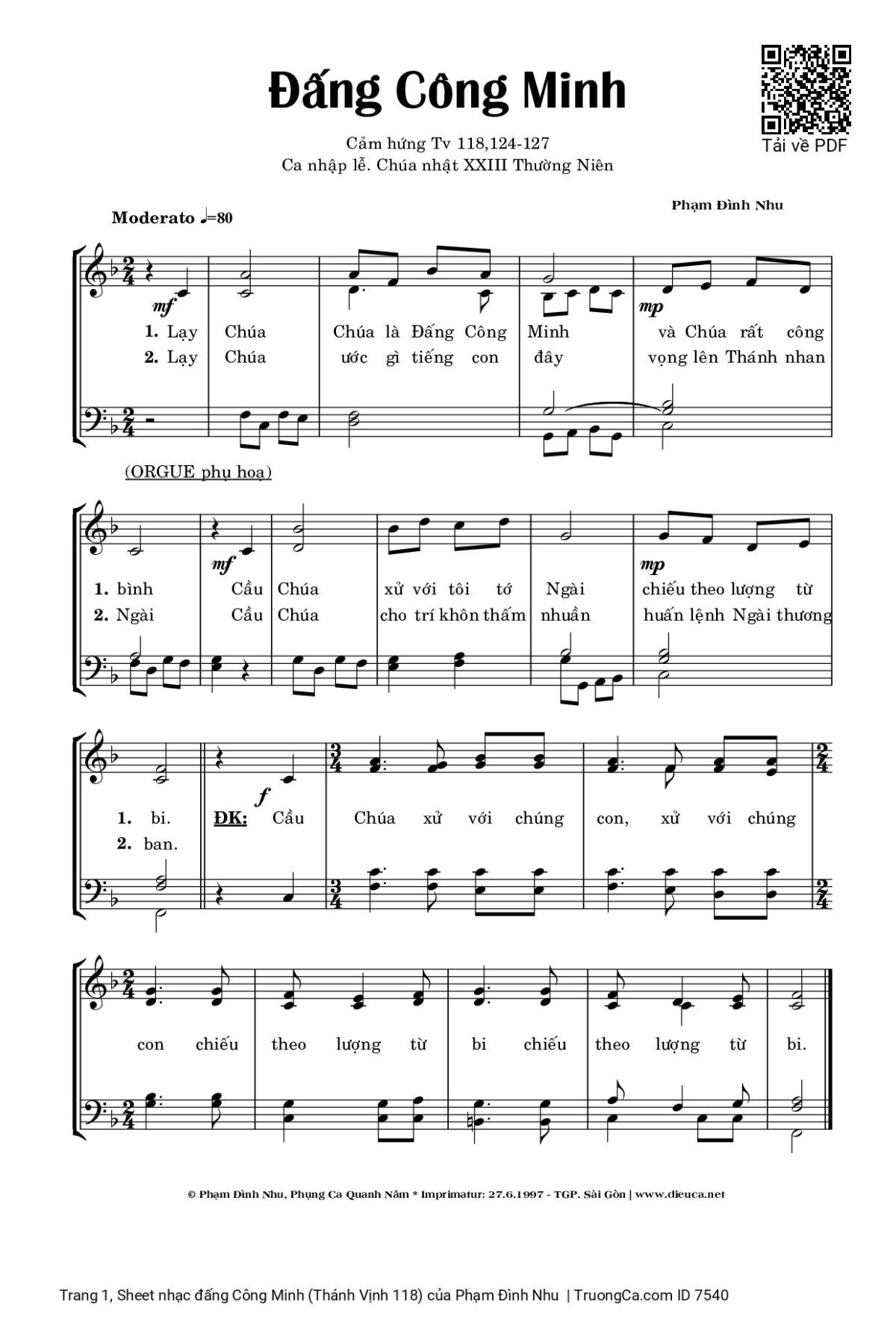 1. Lạy Chúa Chúa là Đấng Công Minh và Chúa rất công bình Cầu Chúa xử với tôi tớ Ngài chiếu theo lượng từ bi.