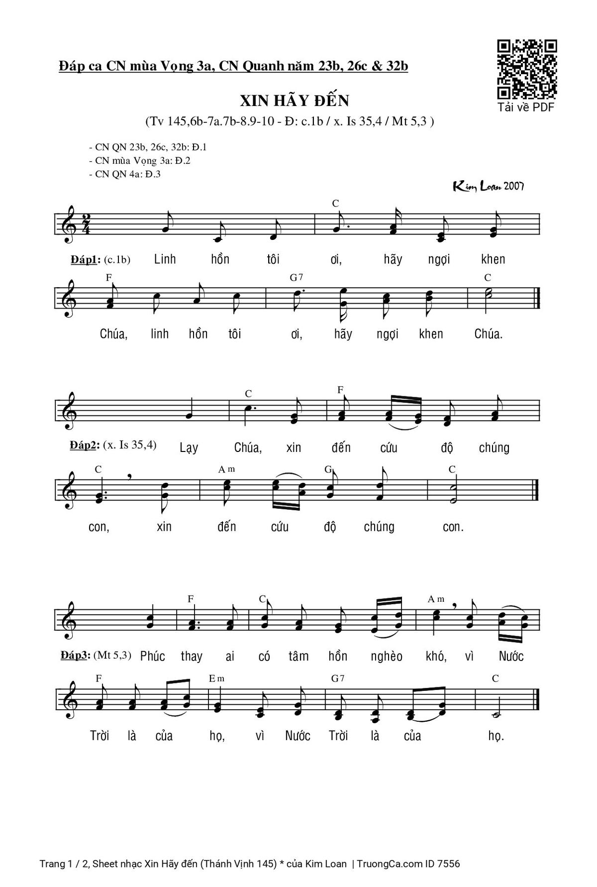 More similar sheets PDF Xin Hãy đến (Thánh Vịnh 145) *: