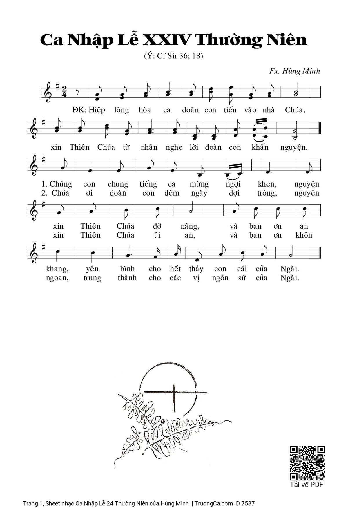 Sheet PDF with the same name Ca Nhập Lễ 24 Thường Niên: