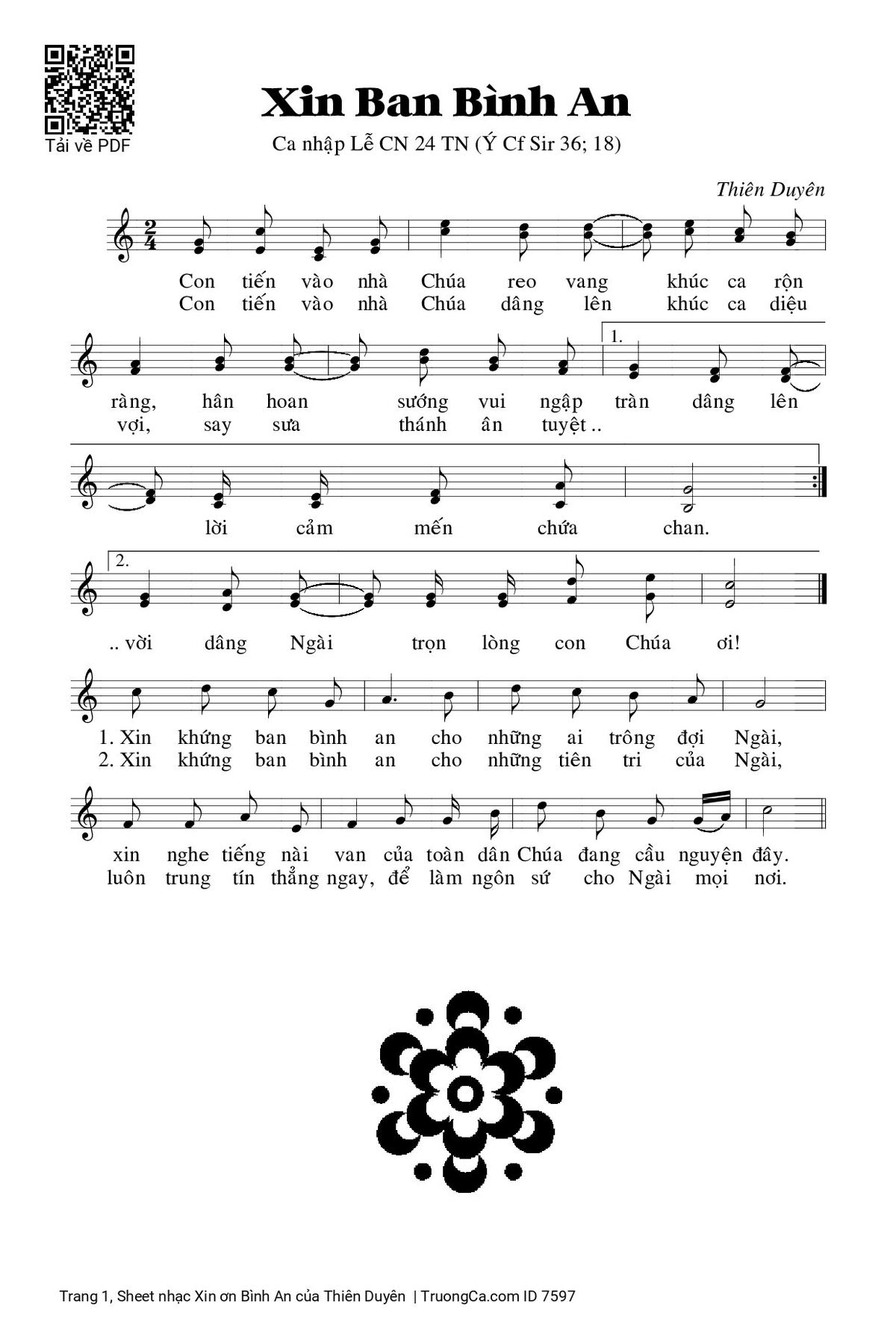 1. Xin khứng ban bình an cho những ai trông đợi Ngài, xin nghe tiếng nài van của toàn dân Chúa đang cầu nguyện đây. 2. Xin khứng ban bình an cho những tiên tri của Ngài, hãy trung tín thẳng ngay, để làm ngôn sứ cho Ngài mọi nơi.