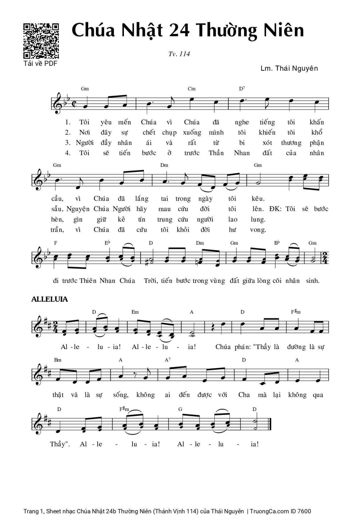 Sheet PDF with the same name Thánh Vịnh 114, Chúa Nhật 24b: