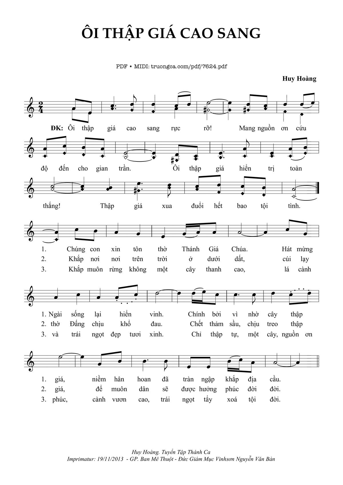 Huy Hoàng Ôi thập giá cao sang rực rỡ Mang nguồn ơn cứu độ đến cho gian trần [PDF] [Sheet] [Lyrics] [Mp4/Midi]