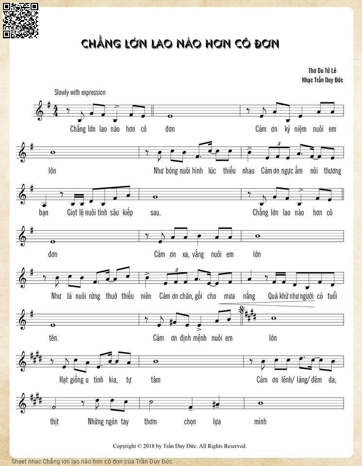 Trần Duy Đức Chẳng lớn lao nào hơn cô đơn Cảm ơn kỷ niệm nuôi em lớn [PDF] [Sheet] [Lyrics] [Mp4/Midi]
