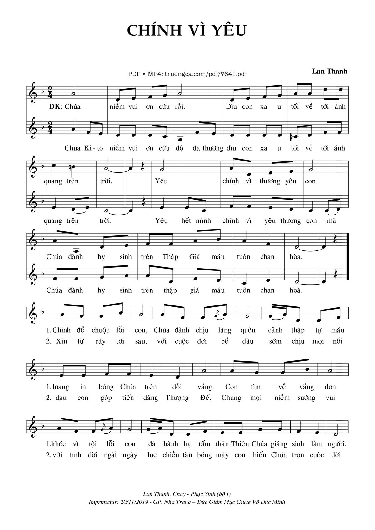 Lan Thanh Chúa niềm vui ơn cứu rỗi dìu con xa u tối về tới ánh quang trên trời [PDF] [Sheet] [Lyrics] [Mp4/Midi]