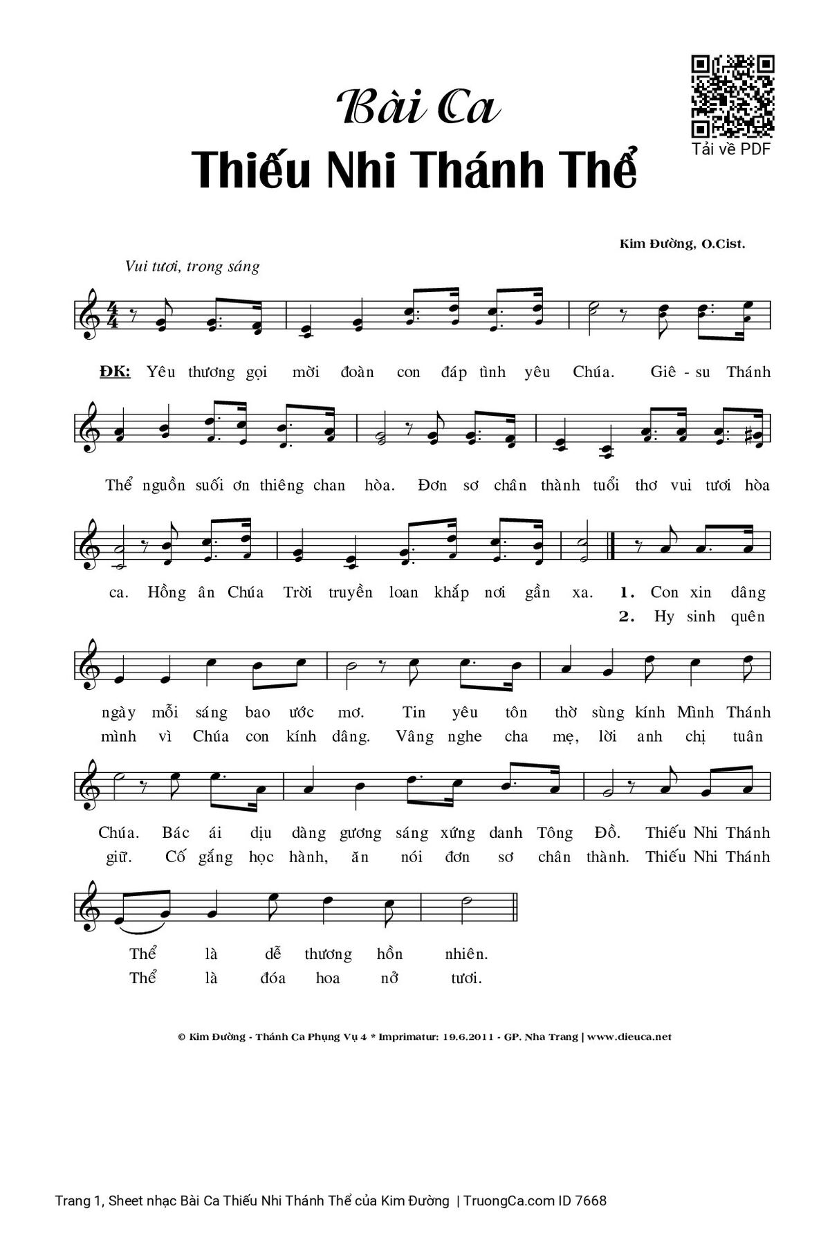 🌾 Imprimatur, Thông tin chuẩn nhận dùng trong phụng vụ Công Giáo: Thiếu Nhi. Imprimature – Gp. Nha Trang: 19.06.2021