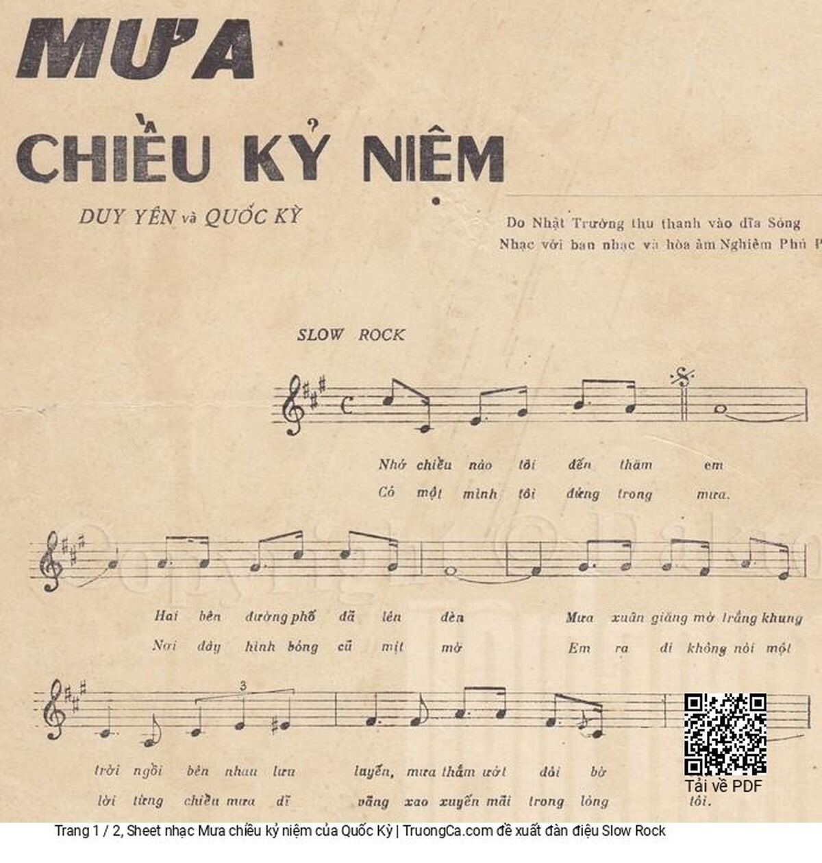 Sheet PDF with the same name Mưa chiều kỷ niệm: