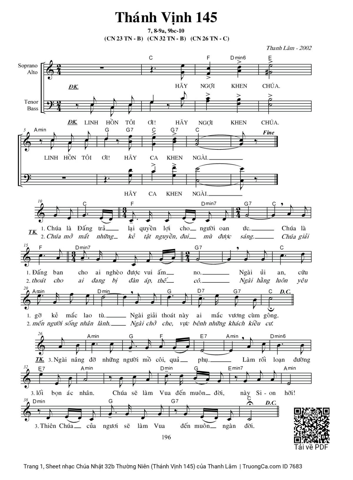 Thanh Lâm Chúa là Đấng trả lại quyền lợi cho người oan ức [PDF] [Sheet] [Lyrics] [Mp4/Midi]