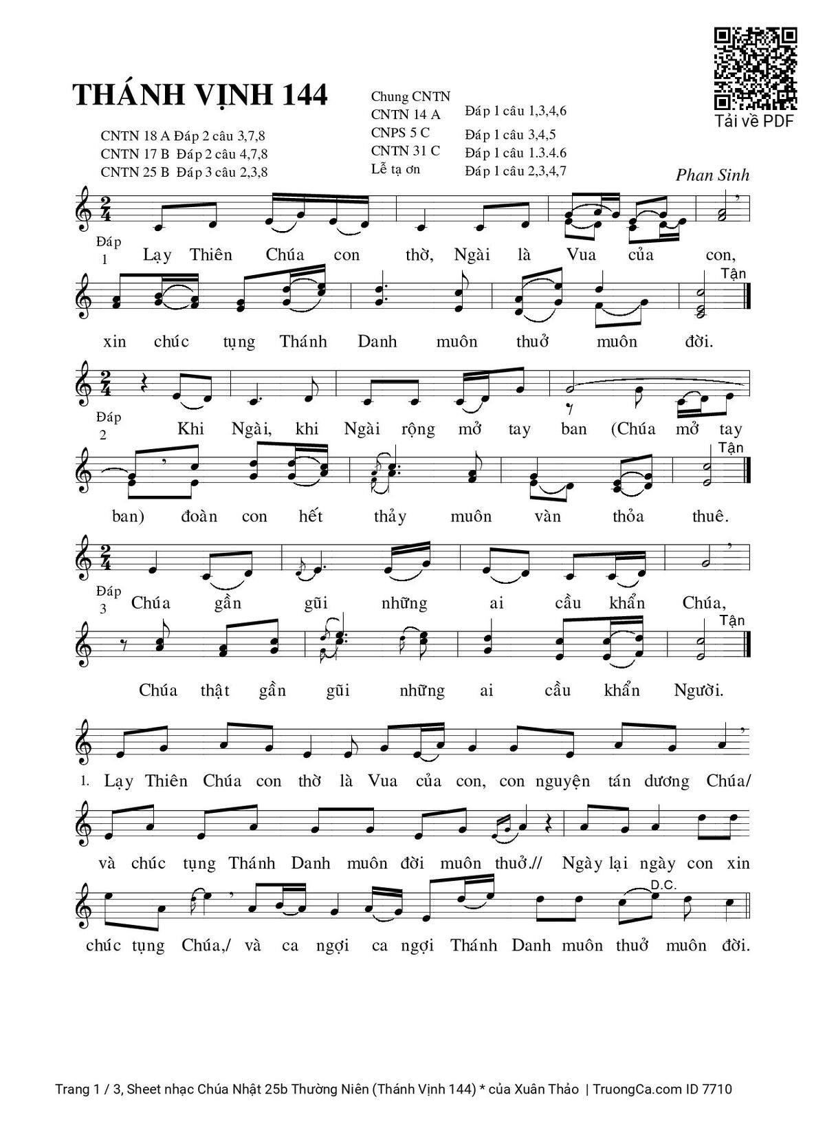 Category 🌾 Nhạc Thánh Ca, 🌾 Thánh Vịnh - Đáp Ca, 🌾 Thánh Vịnh 144