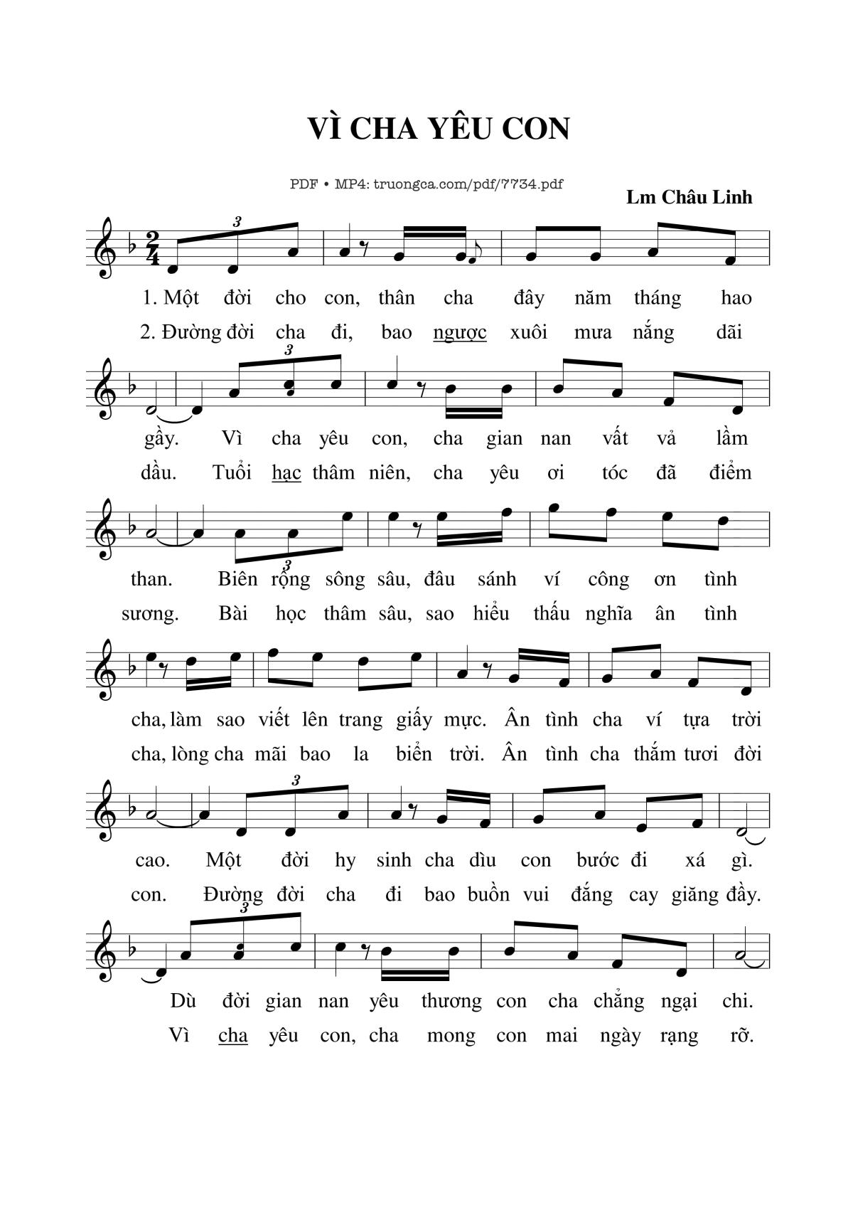 Châu Linh Một đời cho con thân cha đây năm tháng hào gầy [PDF] [Sheet] [Lyrics] [Mp4/Midi]