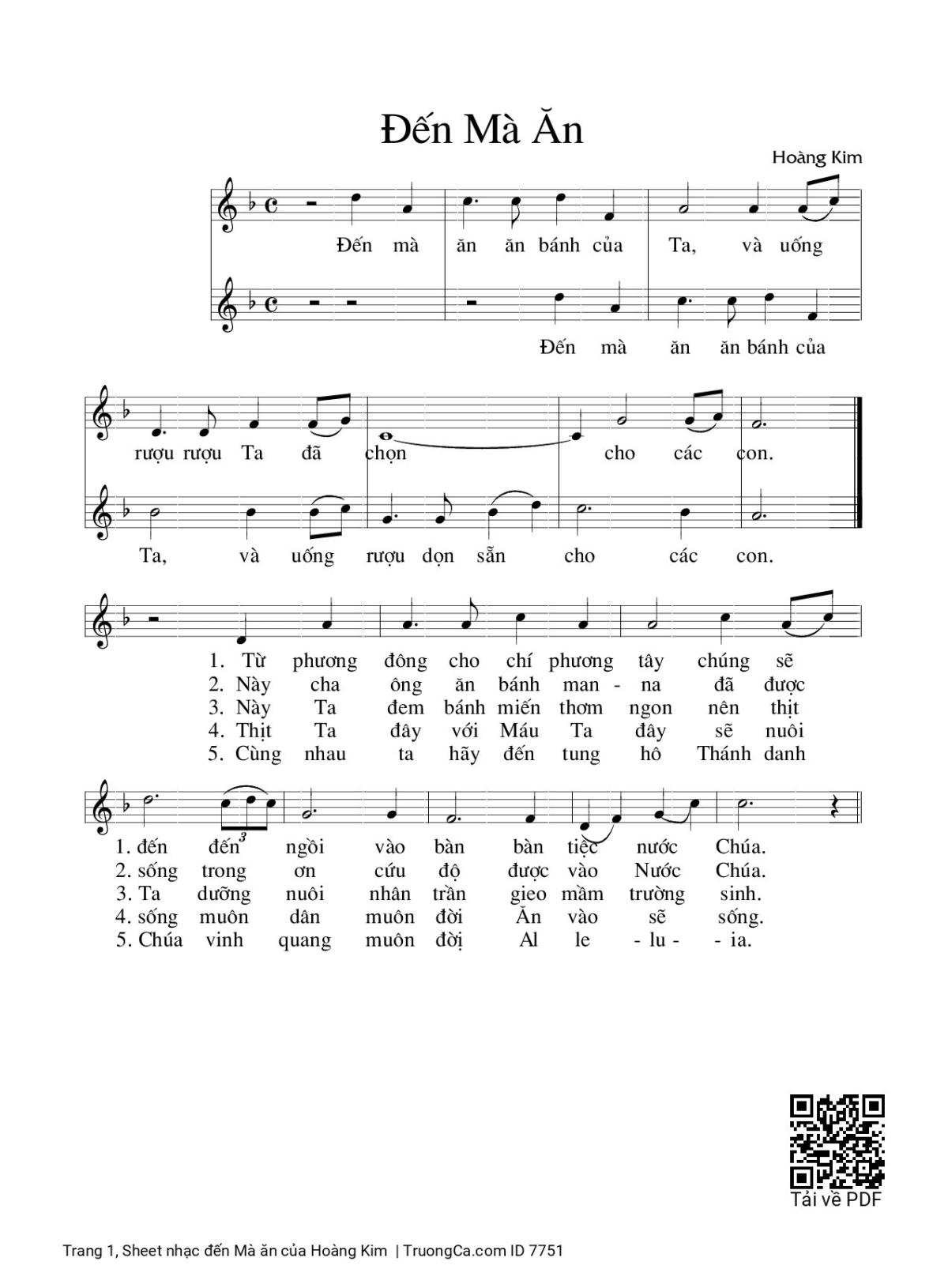 Hoàng Kim Từ phương Đông cho chí phương Tây chúng sẽ đến [PDF] [Sheet] [Lyrics] [Mp4/Midi]
