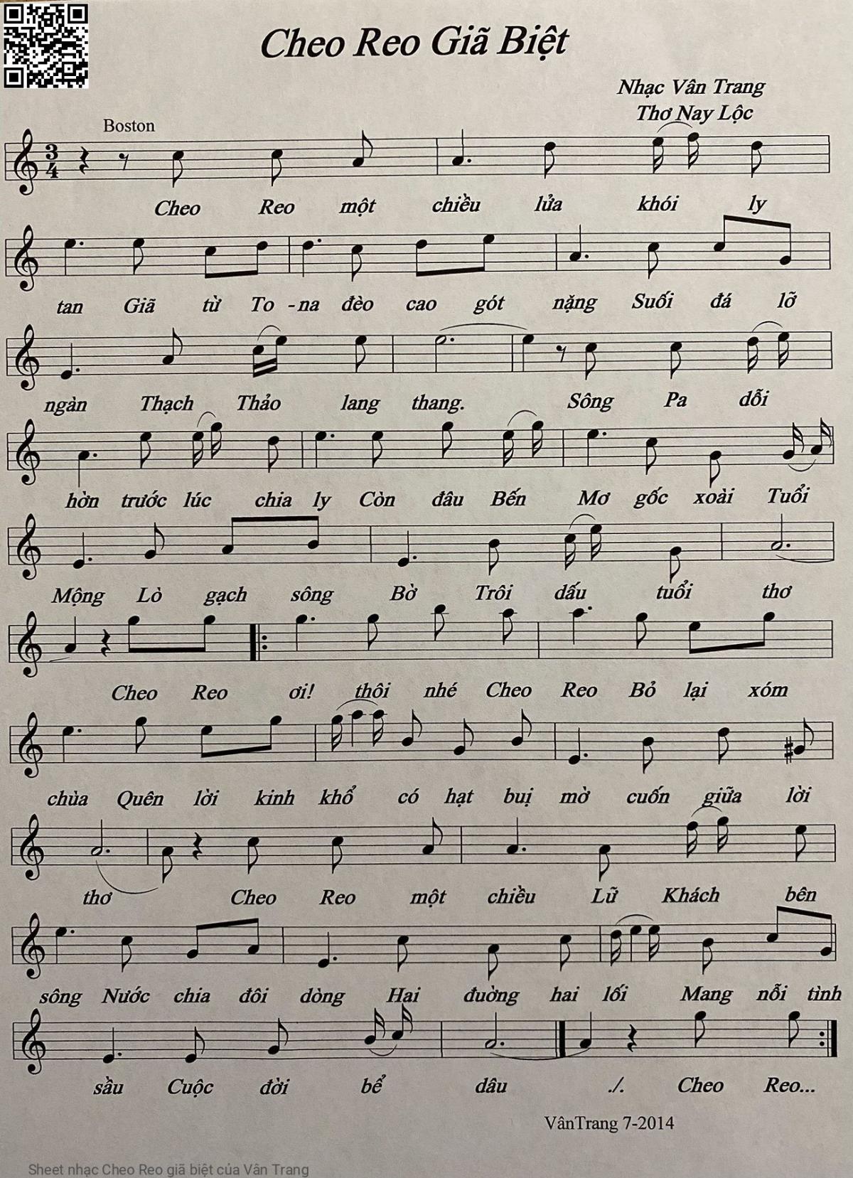 Vân Trang Cheo Reo một chiều lửa khói ly tan Giã từ Tona đèo cao gót nặng [PDF] [Sheet] [Lyrics] [Mp4/Midi]