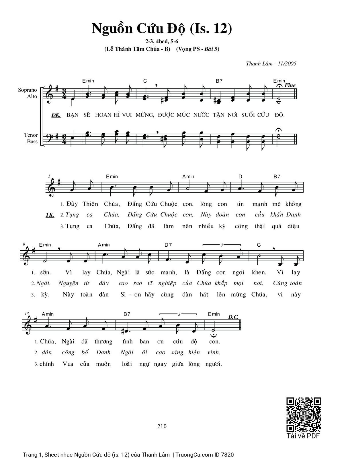 Thanh Lâm Bạn sẽ hoan hỉ vui mừng được múc nước tận nơi suối cứu độ [PDF] [Sheet] [Lyrics] [Mp4/Midi]