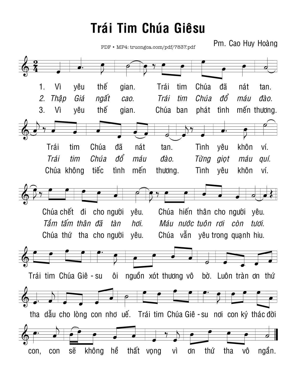 Cao Huy Hoàng Vì yêu thế gian Trái tim Chúa Giêsu đã nát tan [PDF] [Sheet] [Lyrics] [Mp4/Midi]