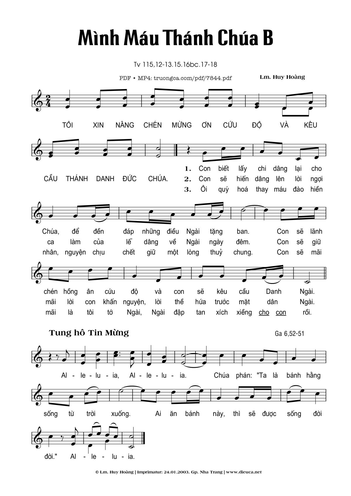 More similar sheets PDF Mình Máu Thánh Chúa . Năm B (Thánh Vịnh 115):