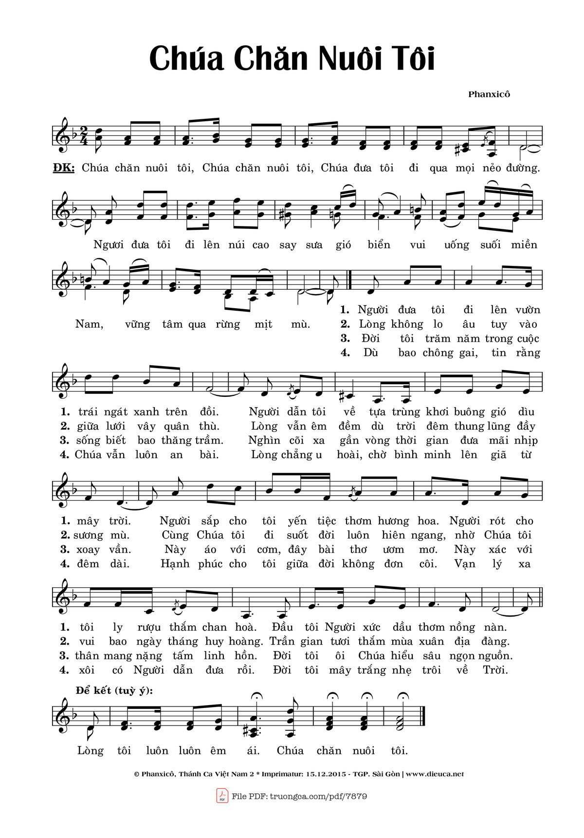Phanxicô Chúa chăn nuôi tôi, Chúa chăn nuôi tôi, Chúa đưa tôi đi qua mọi nẻo đường [PDF] [Sheet] [Lyrics] [Mp4/Midi]