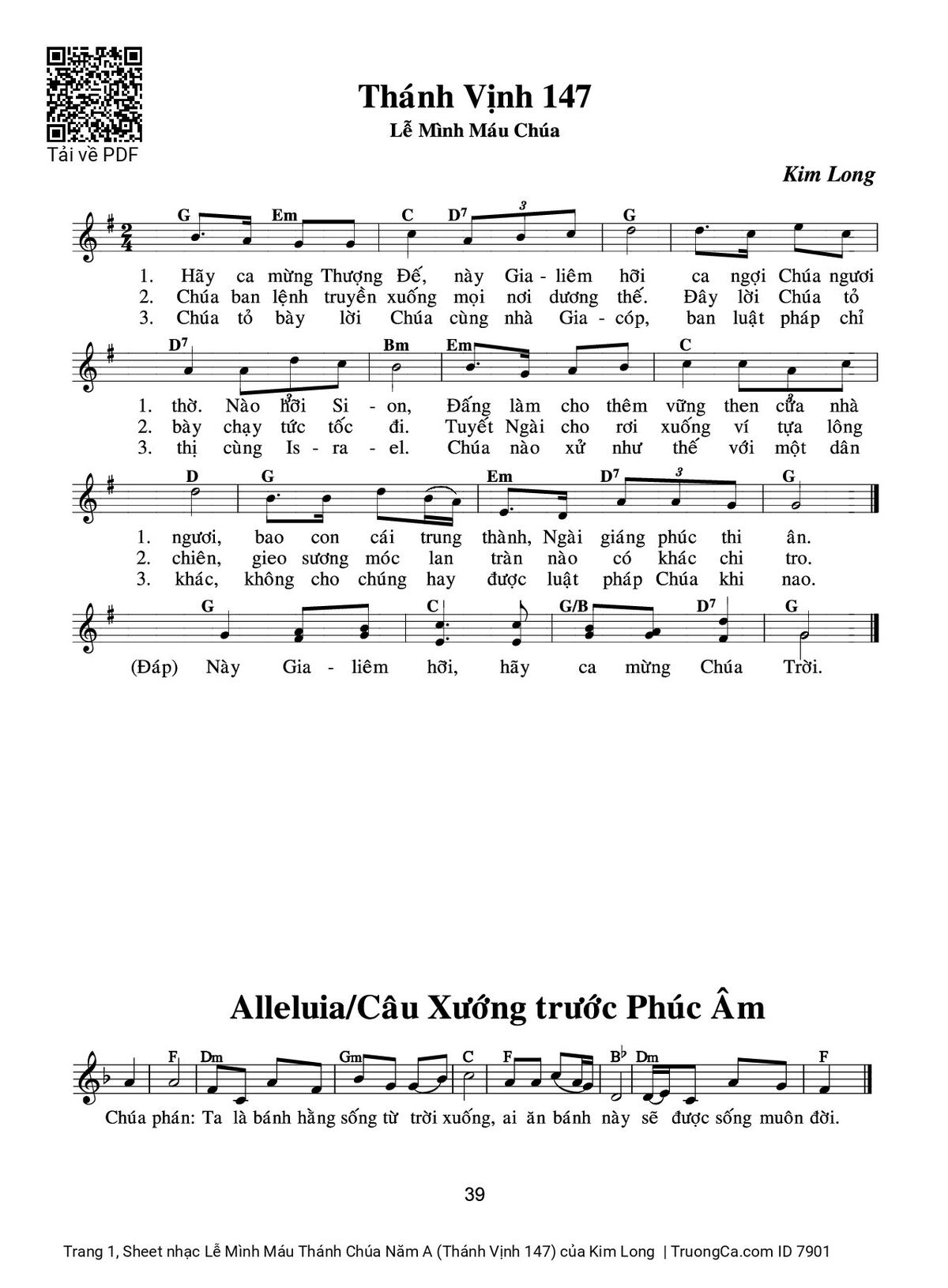 More similar sheets PDF Lễ Mình Máu Thánh Chúa Năm A (Thánh Vịnh 147):