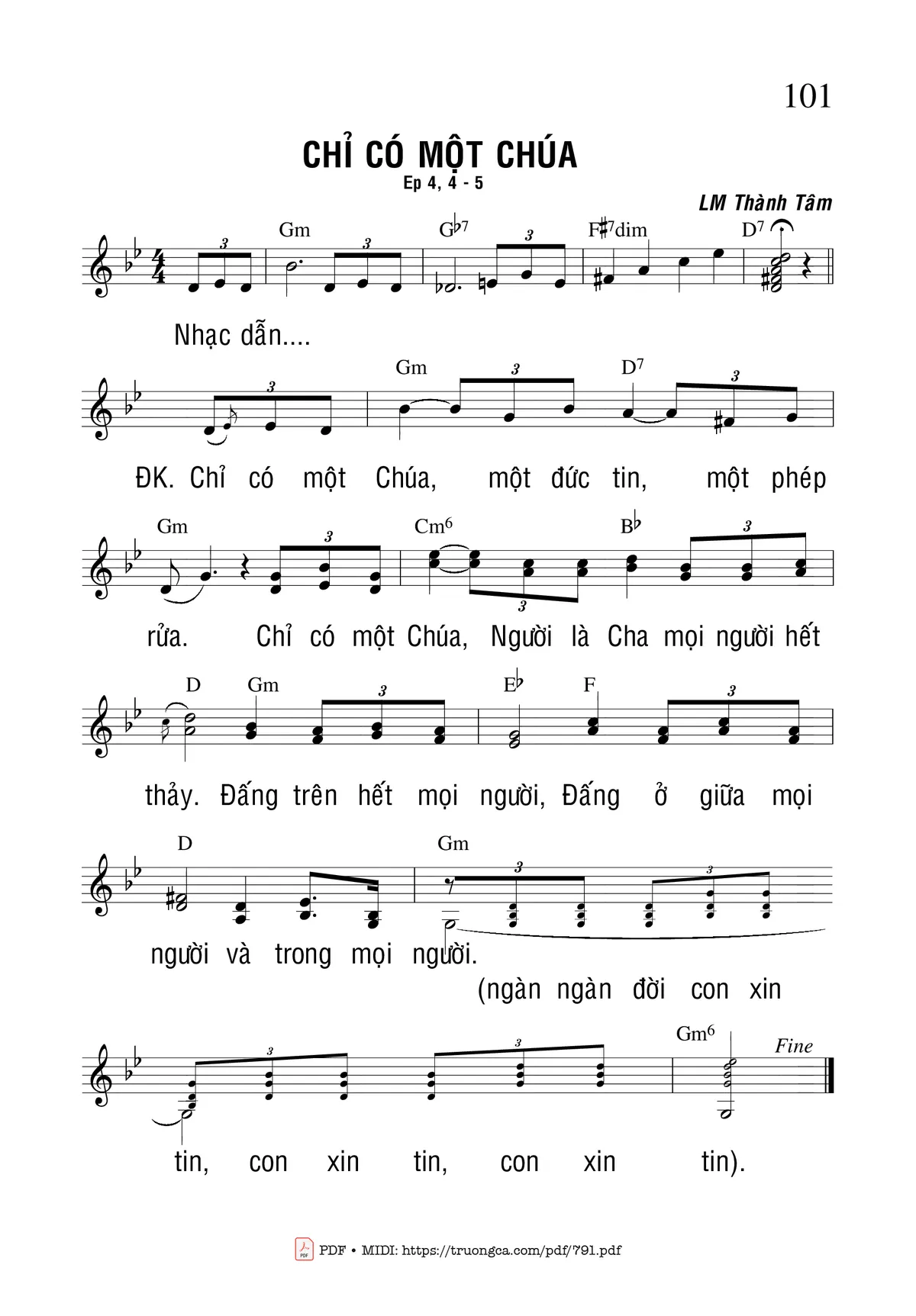 Lm. Thành Tâm Chỉ có một Chúa một đức tin một phép rửa [PDF] [Sheet] [Lyrics] [Mp4/Midi]