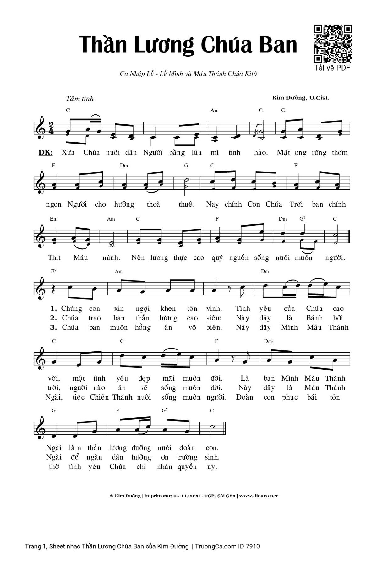 Page 1 of Sheet music PDF Thần Lương Chúa Ban - Kim Đường