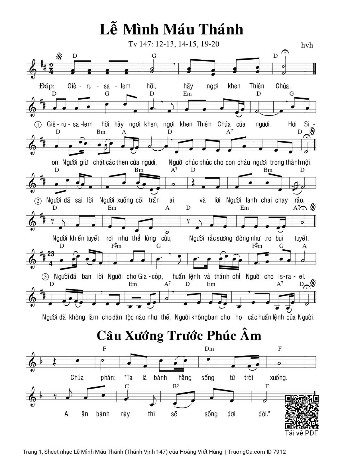 More similar sheets PDF Lễ Mình Máu Thánh (Thánh Vịnh 147):