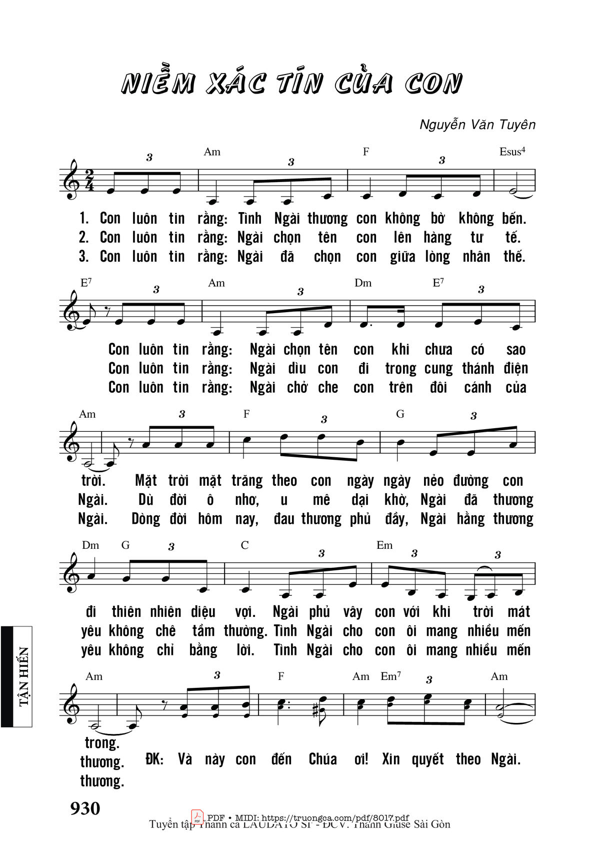Sheet PDF with the same name Niềm Xác Tín Của Con:
