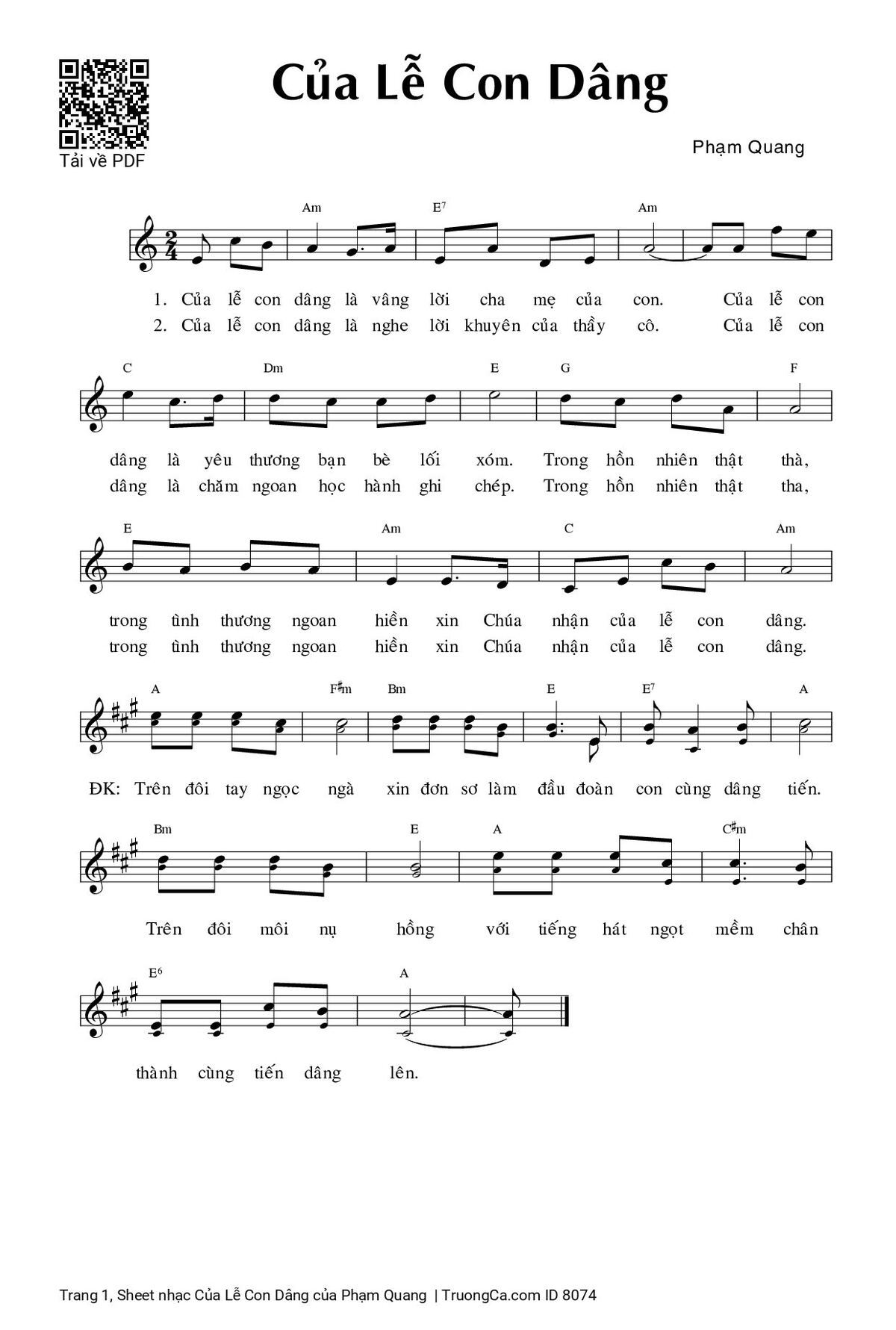 Phạm Quang Của lễ con dâng là vâng lời cha mẹ của con [PDF] [Sheet] [Lyrics] [Mp4/Midi]