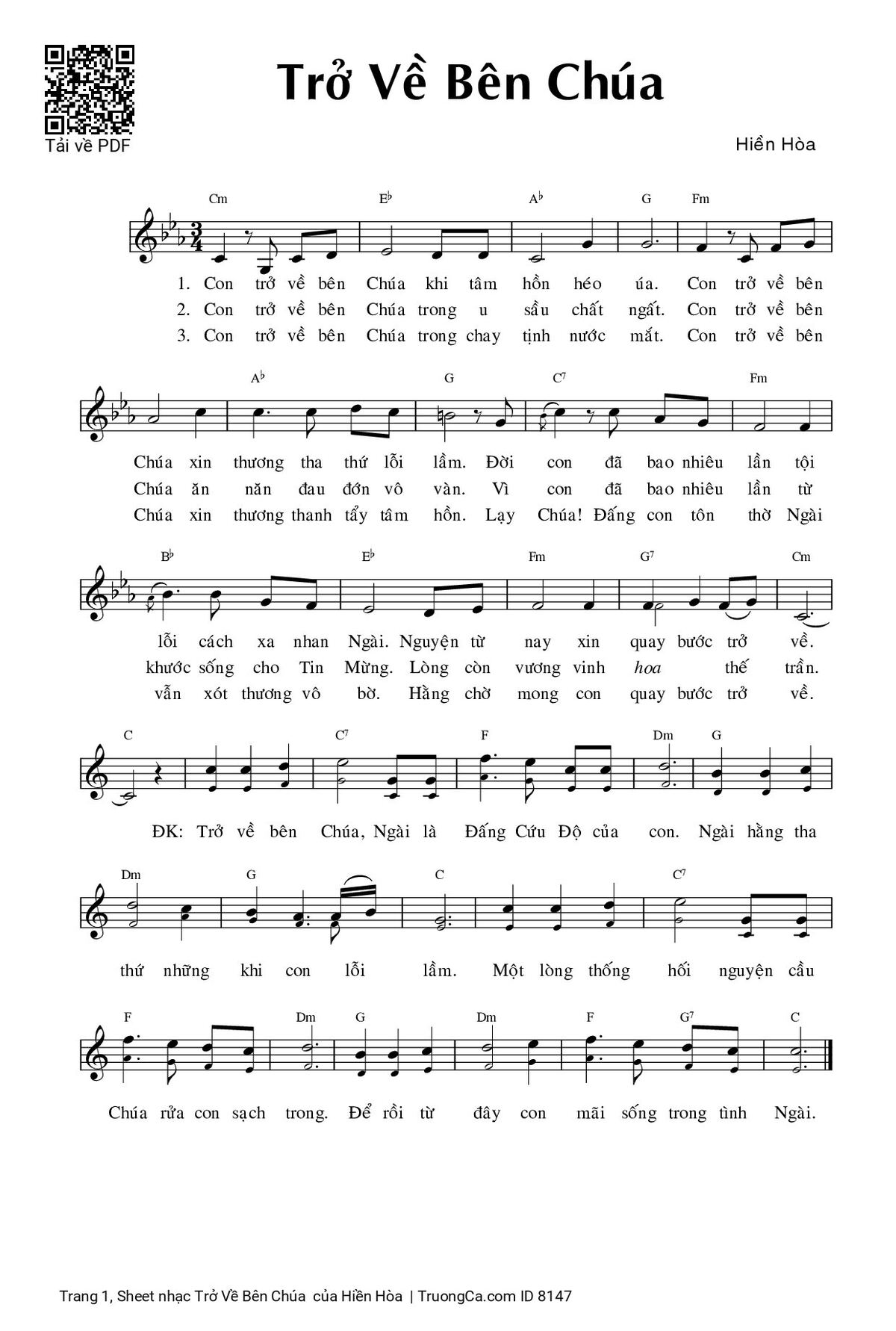 Hiền Hòa Con trở về bên Chúa khi tâm hồn héo úa [PDF] [Sheet] [Lyrics] [Mp4/Midi]