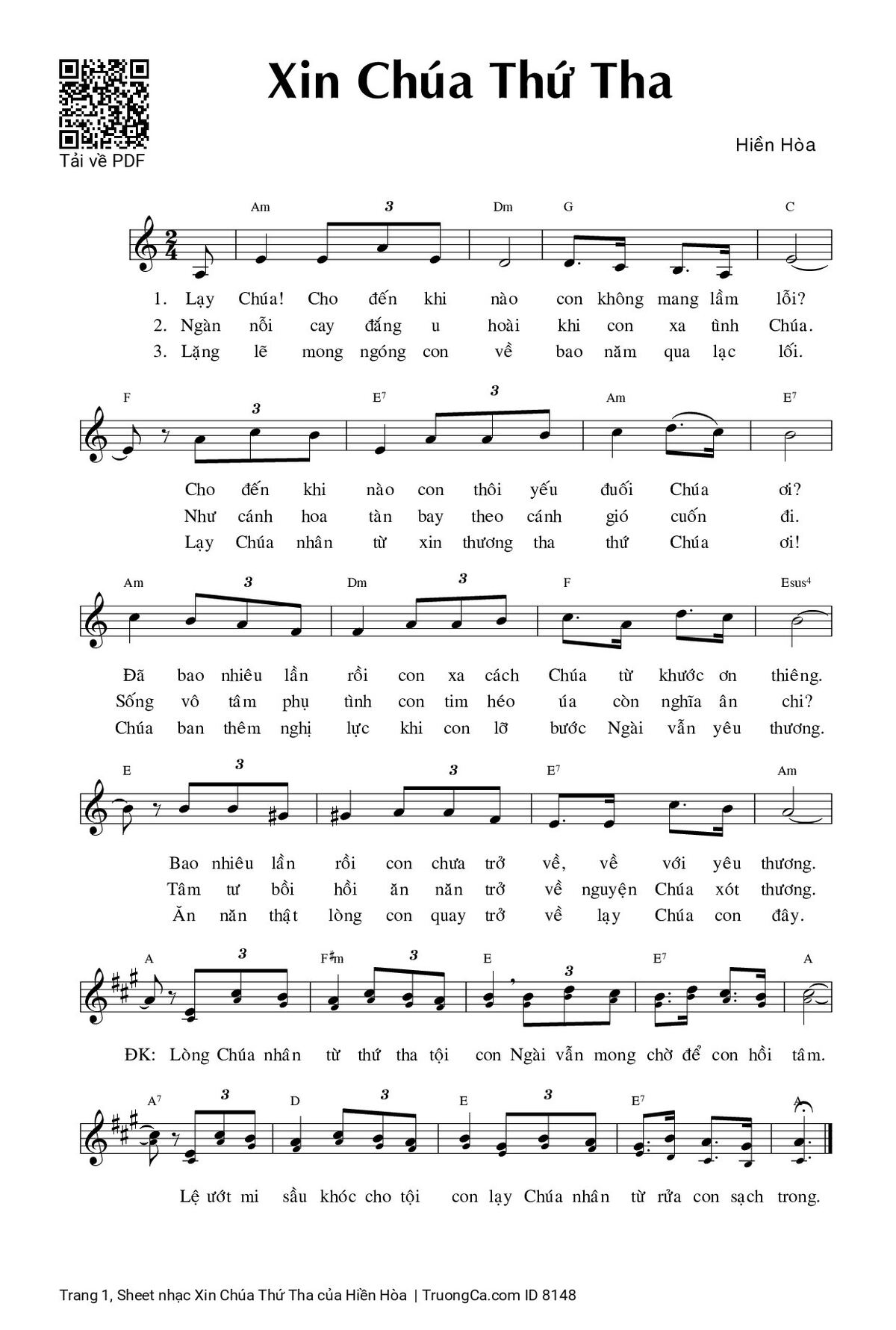 Sheet PDF with the same name Xin Chúa Thứ Tha: