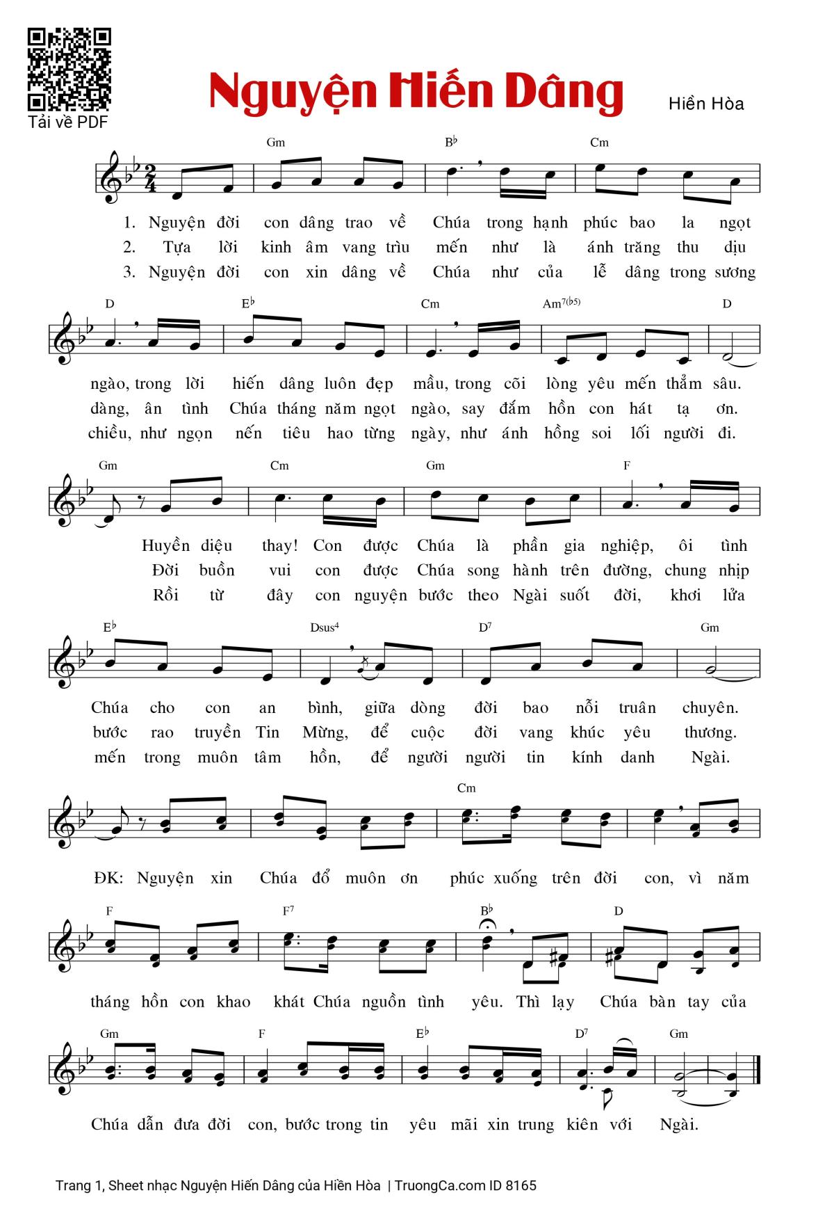 Hiền Hòa Nguyện đời con dâng trao về Chúa trong hạnh phúc bao la ngọt ngào [PDF] [Sheet] [Lyrics] [Mp4/Midi]
