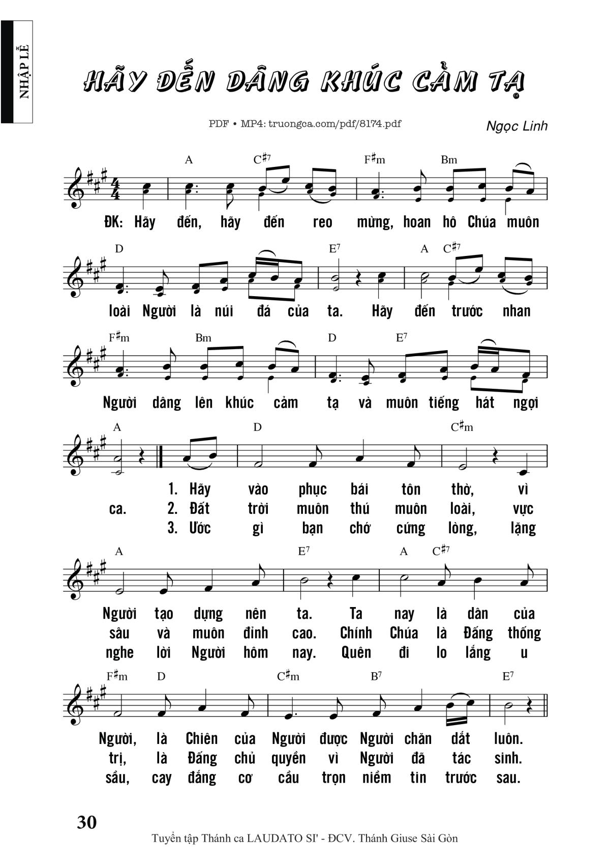 1. Hãy vào phục bái tôn thờ. Vì Người tạo dựng nên ta. Ta nay là dân của Người. Là chiên của Người được Ngài chăn dắt luôn.