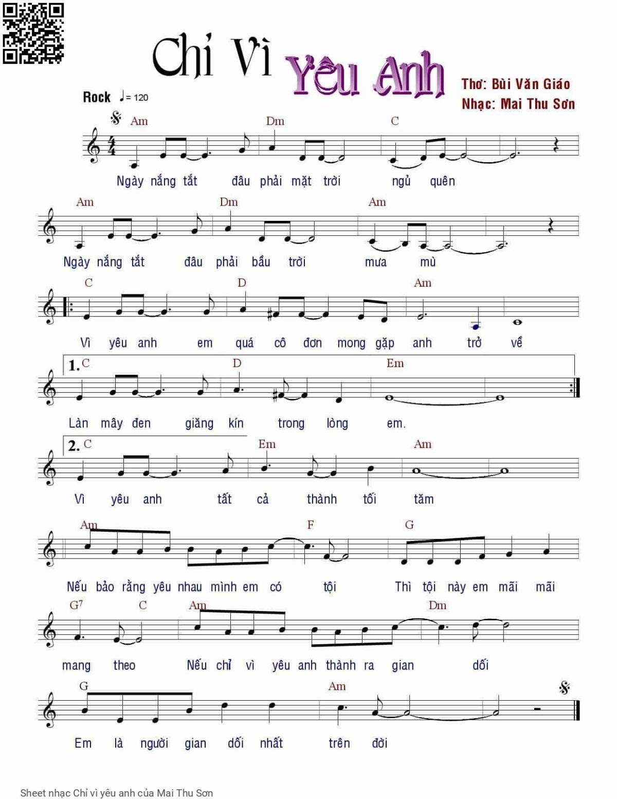 The Videos/audios Chỉ vì yêu anh by Mai Thu Sơn were embed from Youtube, Musescore or the other 3rd links. Videos are subject to 3rd's copyright control and may be removed by YouTube's copyright rules and 3rd's policies or maybe included advertisements. If you cannot access to these songs, this mean that have been removed.
