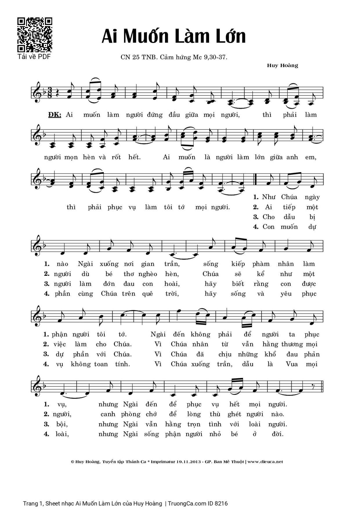 Huy Hoàng Ai muốn làm người đứng đầu giữa mọi người [PDF] [Sheet] [Lyrics] [Mp4/Midi]
