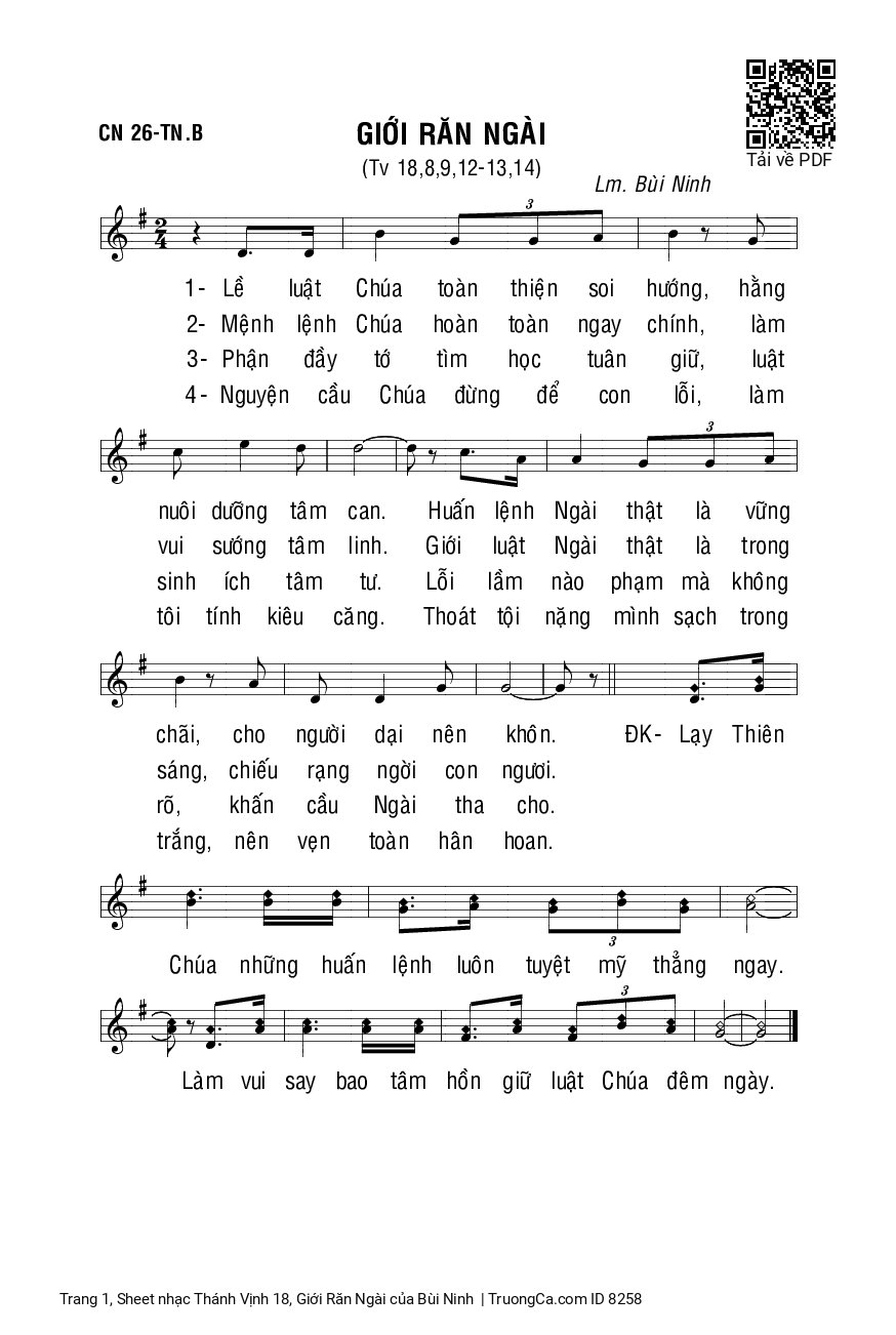 Bùi Ninh Lề luật Chúa toàn thiện soi hướng hằng nuôi dưỡng tâm can [PDF] [Sheet] [Lyrics] [Mp4/Midi]