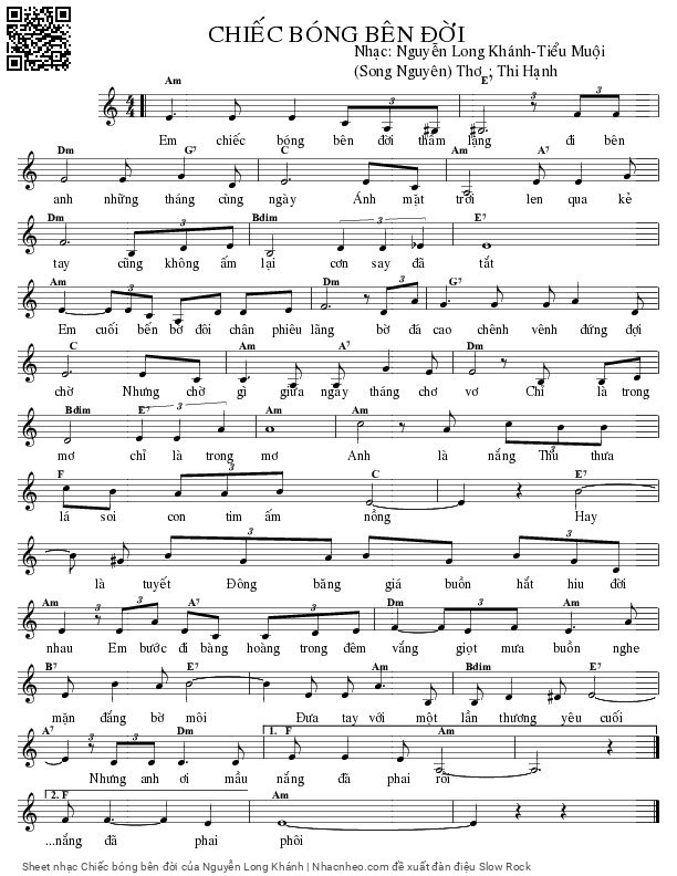 Nguyễn Long Khánh Em chiếc bóng bên đời thầm lặng Đi bên anh những tháng cùng ngày [PDF] [Sheet] [Lyrics] [Mp4/Midi]