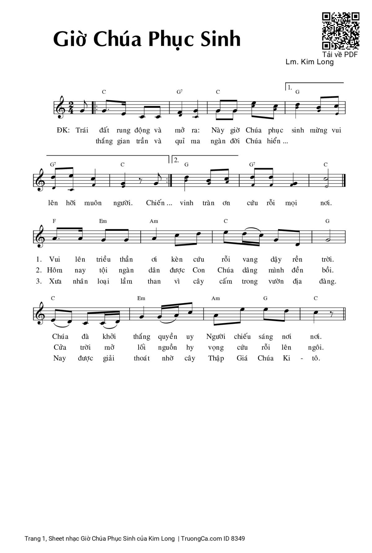 Kim Long Trái đất rung động và mở ra Này giờ Chúa phục sinh [PDF] [Sheet] [Lyrics] [Mp4/Midi]