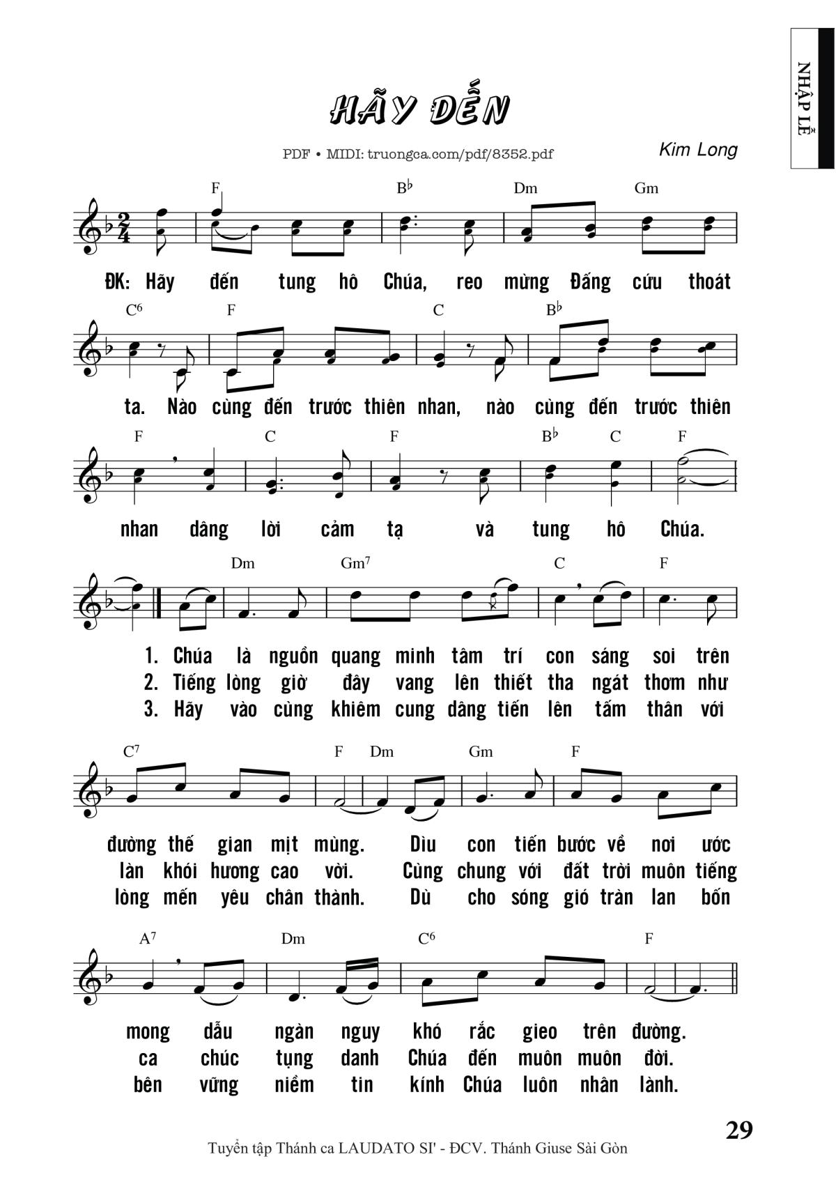 Kim Long Hãy đến tung hô Chúa reo mừng Đấng cứu thoát ta [PDF] [Sheet] [Lyrics] [Mp4/Midi]