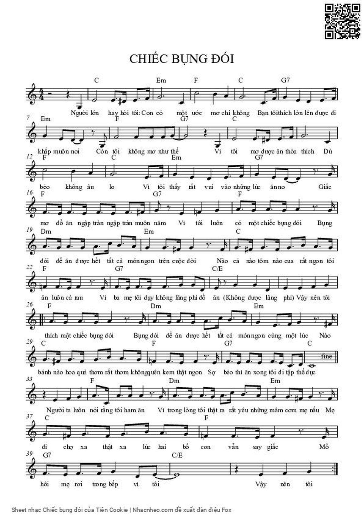 Transposition is the process of moving a song's melody and chords up or down in pitch by a constant interval. The direction of the transposition tool is indicated by a plus (+) sign for up and a minus (-) sign for down. Hover mouse over chords signs to see the chords chart of Chiếc bụng đói song.
