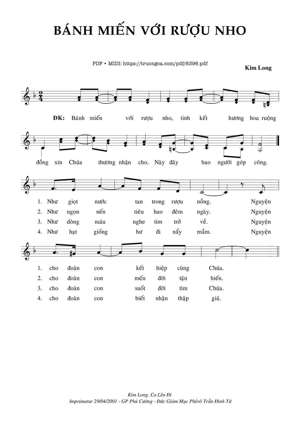 Kim Long Bánh miến vơí rượu nho tinh kết hương hoa ruộng đồng [PDF] [Sheet] [Lyrics] [Mp4/Midi]