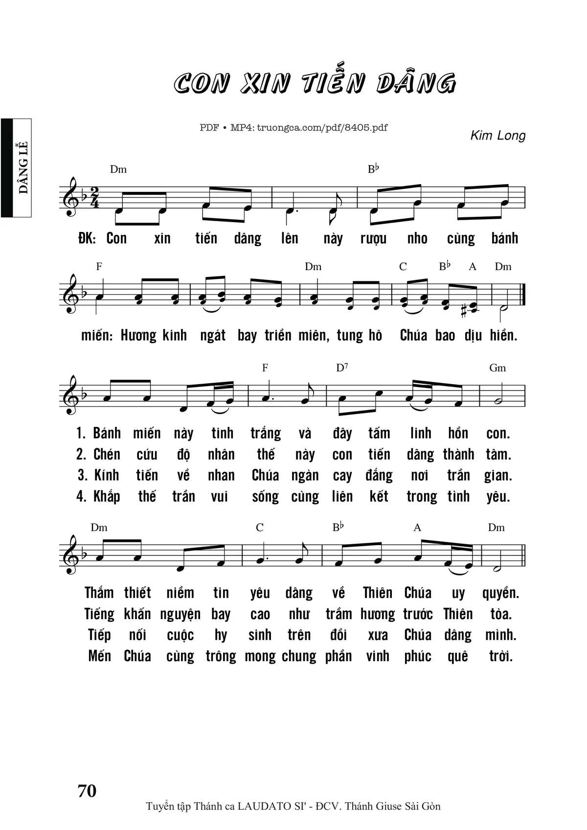 Kim Long Con xin tiến dâng lên này rượu nho cùng bánh miến Hương kinh ngát bay triền miên [PDF] [Sheet] [Lyrics] [Mp4/Midi]