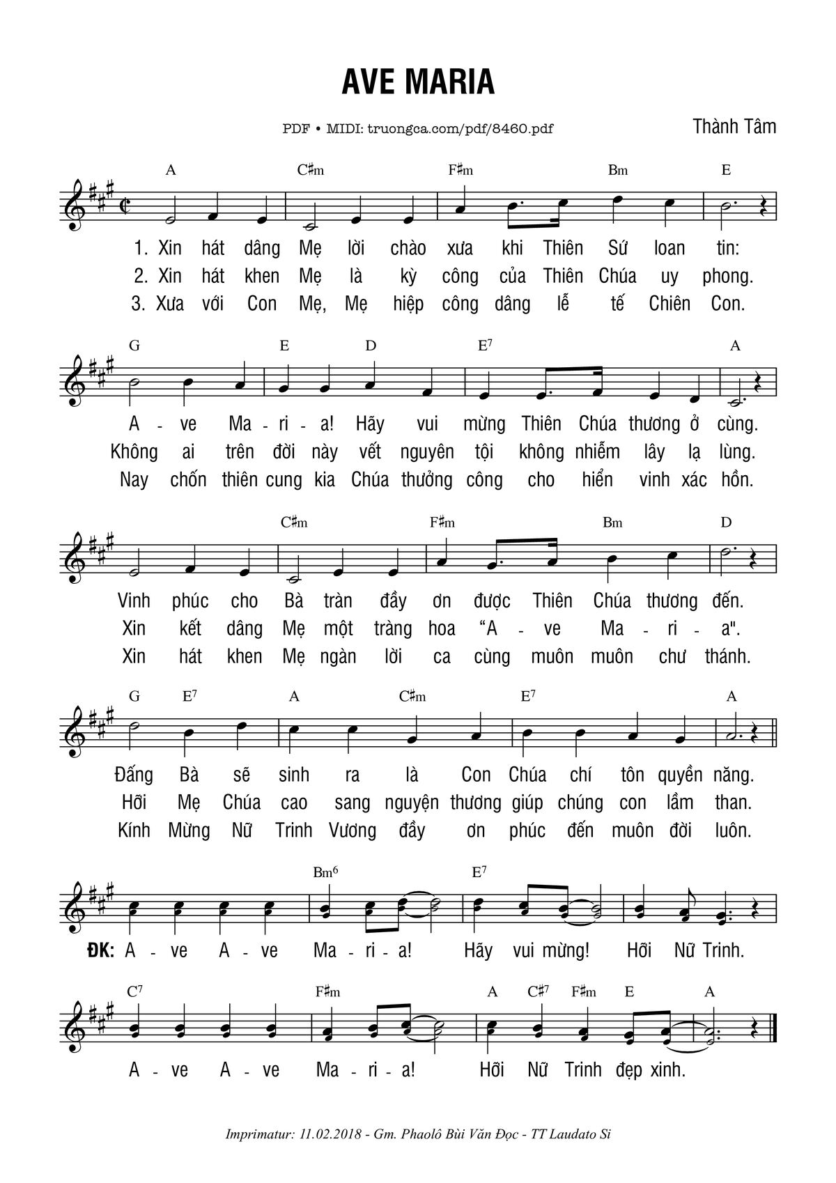 Thành Tâm Xin hát dâng Mẹ lời chào xưa khi Thiên Sứ loan tin Ave Maria [PDF] [Sheet] [Lyrics] [Mp4/Midi]