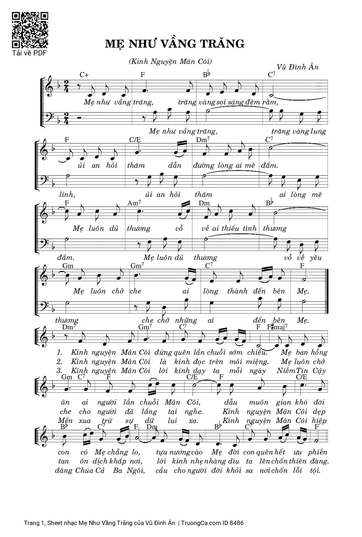 Vũ Đình Ân Kinh nguyện Mân Côi Mẹ như vầng trăng trăng vàng soi sáng đêm rằm [PDF] [Sheet] [Lyrics] [Mp4/Midi]