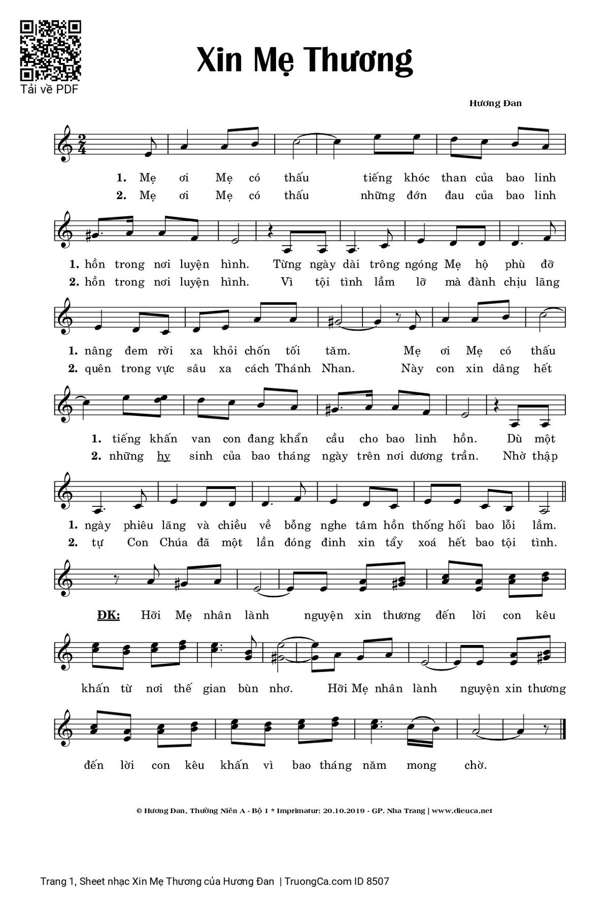 Sheet PDF with the same name Xin Mẹ Thương: