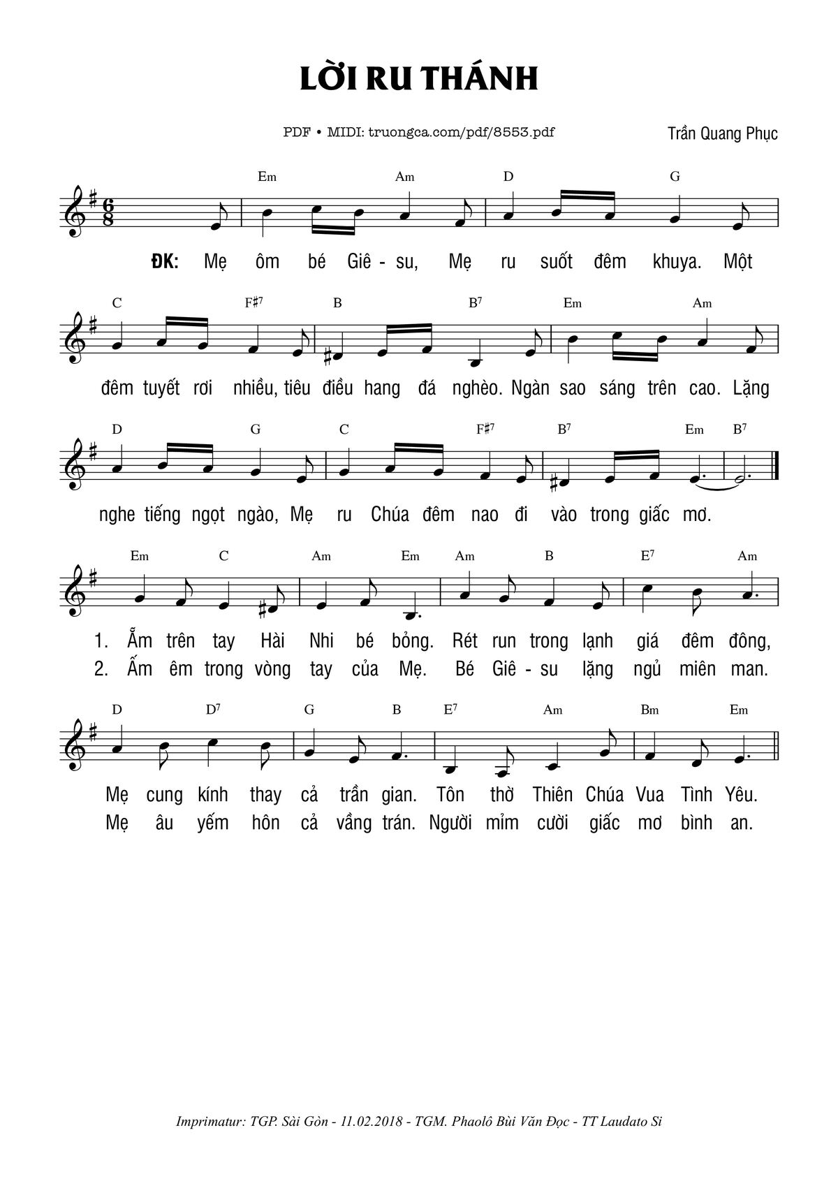 Trần Quang Phục Mẹ ôm bé Giêsu Mẹ ru suốt đêm khuya Một đêm tuyết rơi nhiều [PDF] [Sheet] [Lyrics] [Mp4/Midi]