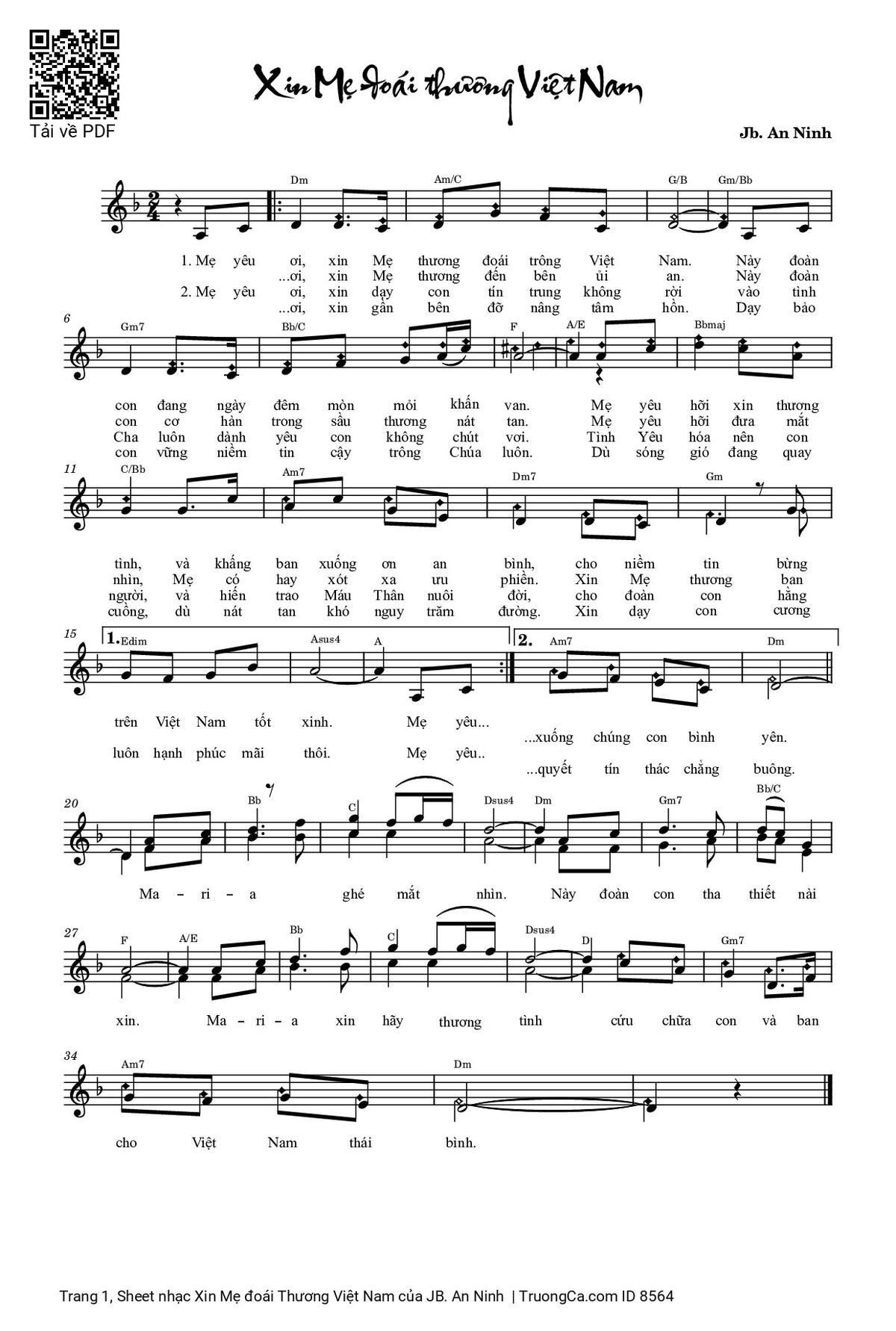 JB. An Ninh Đức Mẹ Mẹ yêu ơi xin Mẹ thương đoái trông Việt Nam [PDF] [Sheet] [Lyrics] [Mp4/Midi]