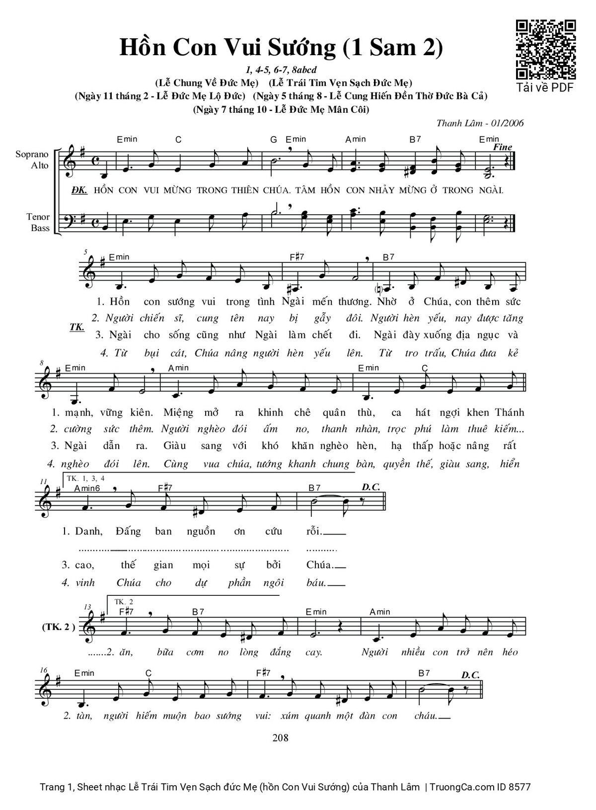 Thanh Lâm Hồn con vui mừng trong Thiên Chúa Tâm hồn con nhảy mừng ở trong Ngài [PDF] [Sheet] [Lyrics] [Mp4/Midi]
