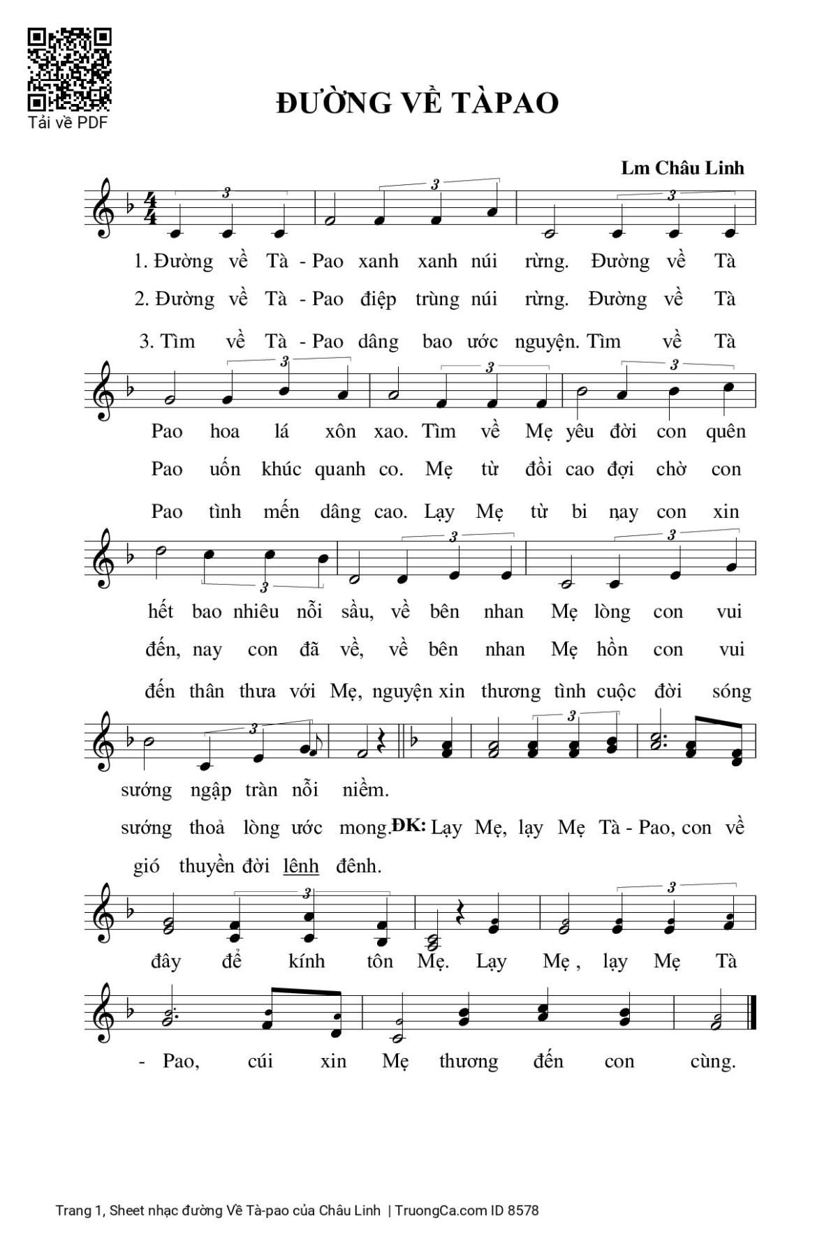 Châu Linh Đường về TàPao xanh xanh núi rừng Đường về TàPao hoa lá xôn xao [PDF] [Sheet] [Lyrics] [Mp4/Midi]
