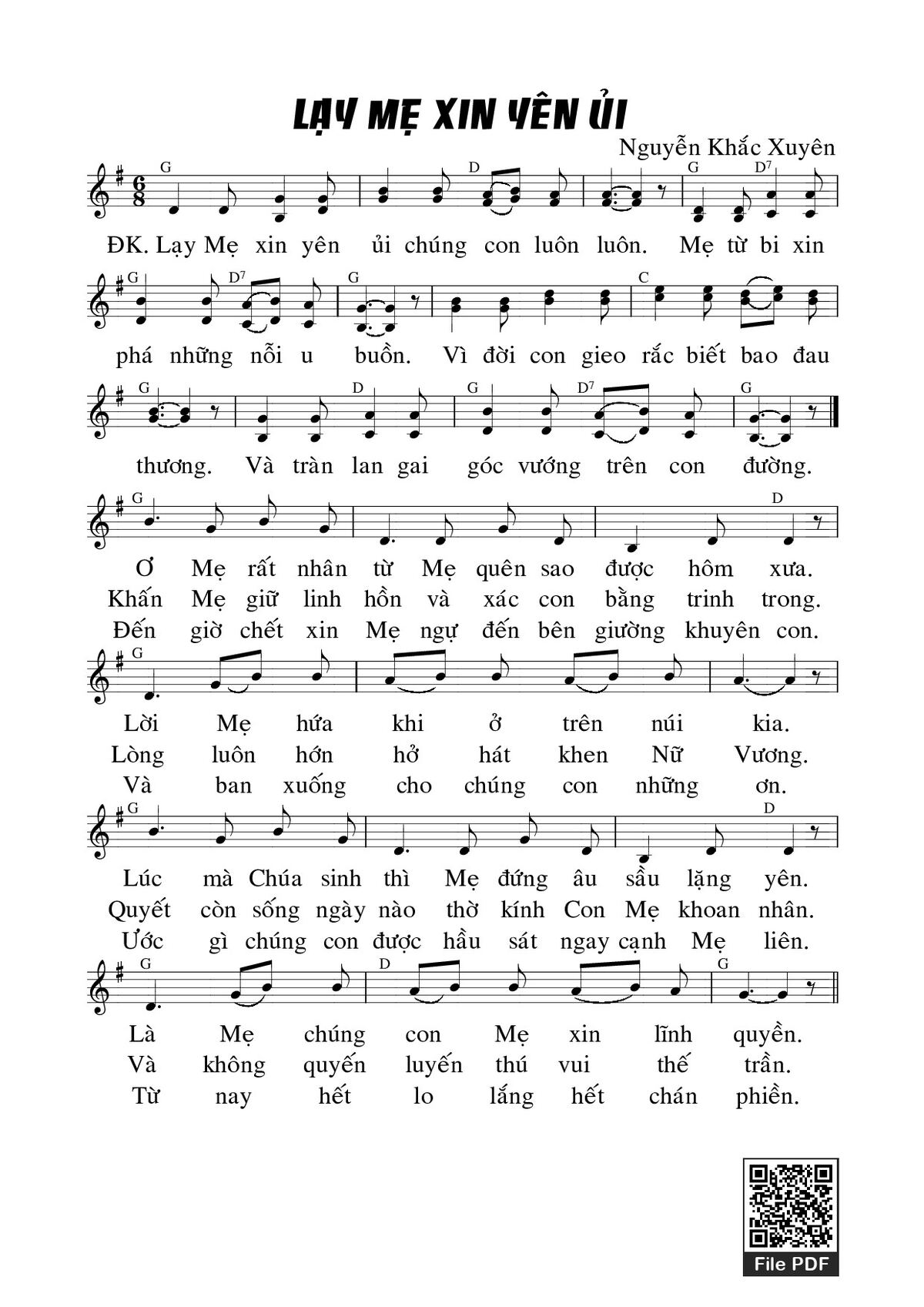 Nguyễn Khắc Xuyên Lạy Mẹ xin yển ủi chúng con luôn luôn Mẹ từ bi xin phá những nỗi u buồn [PDF] [Sheet] [Lyrics] [Mp4/Midi]